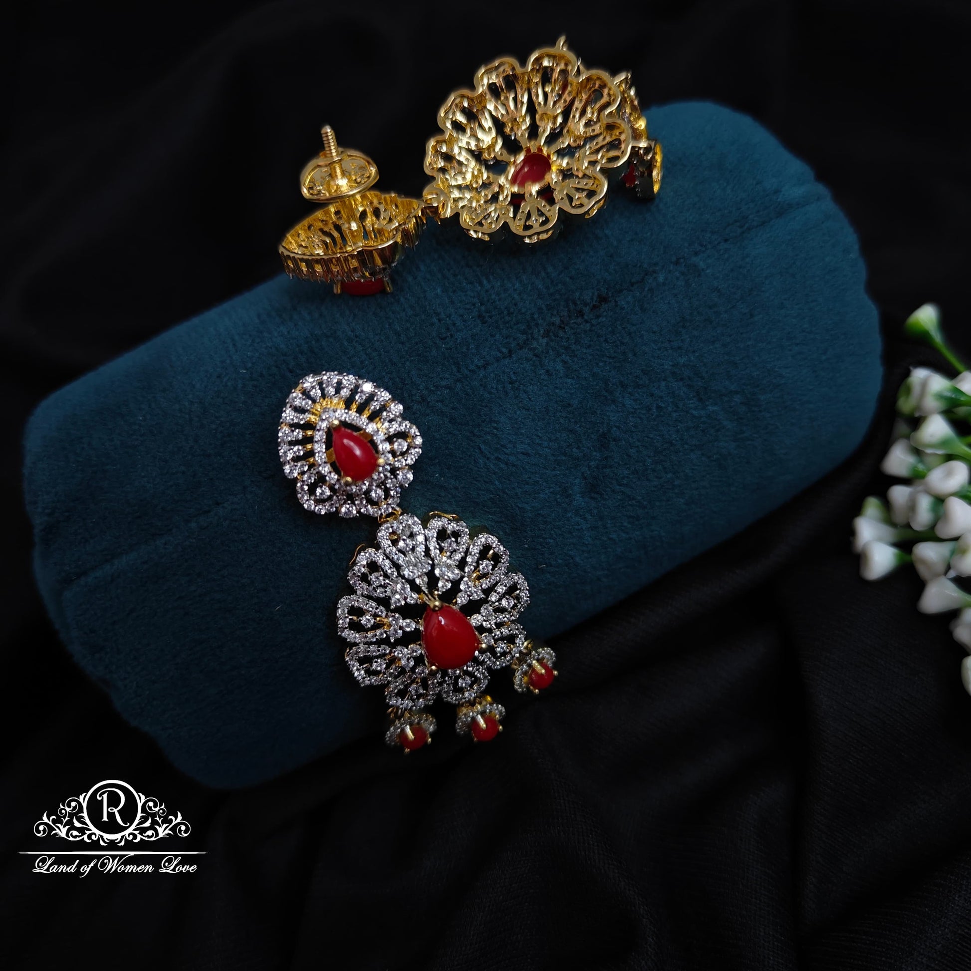 92.5 Silver with gold polish diamond replica coral earrings bombayscrew pattern 2 inches length design by ramalacollections