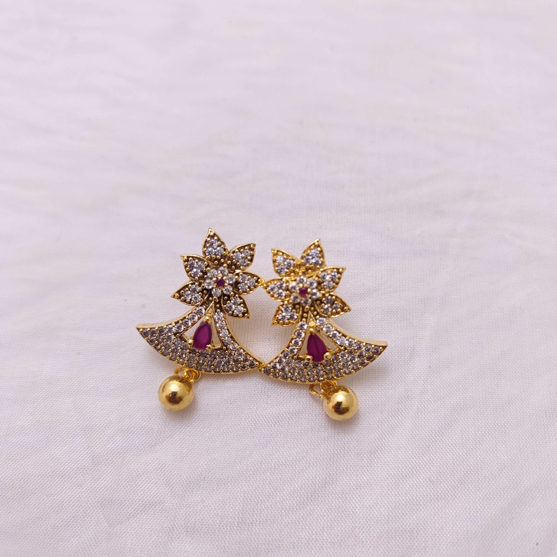 Silver base gold polish beautiful semi precious Cz stone earrings combination design by Ramala Collections