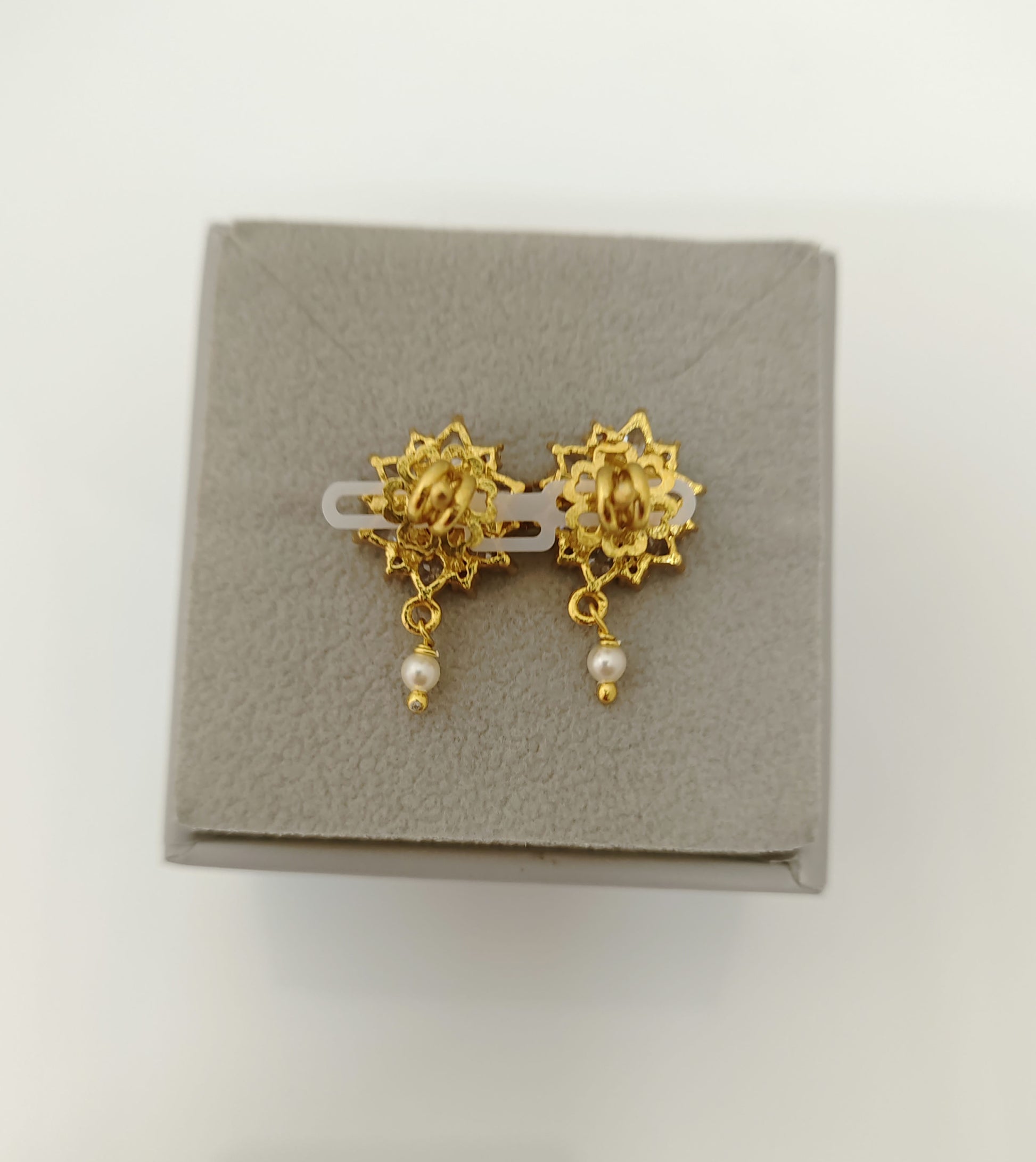 Silver base gold polish beautiful Earrings Designs with white stones middle kempu stone hanging stones back side serew model From ramalacollections