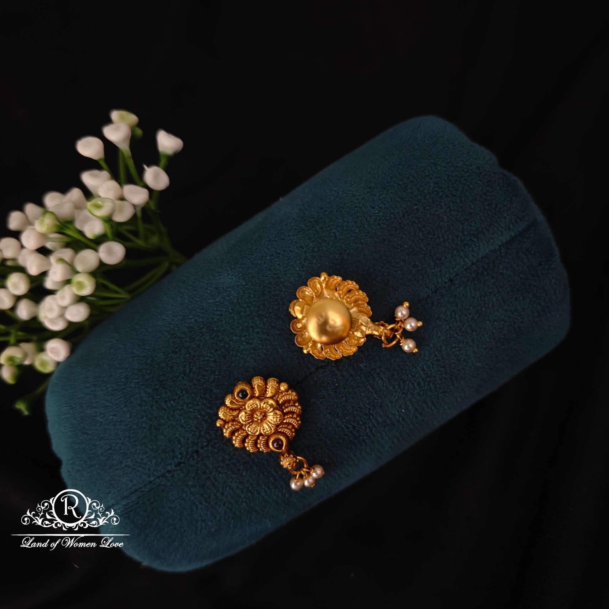 92.5 silver simple cute design earrings with gold polish flower design by Ramala collections