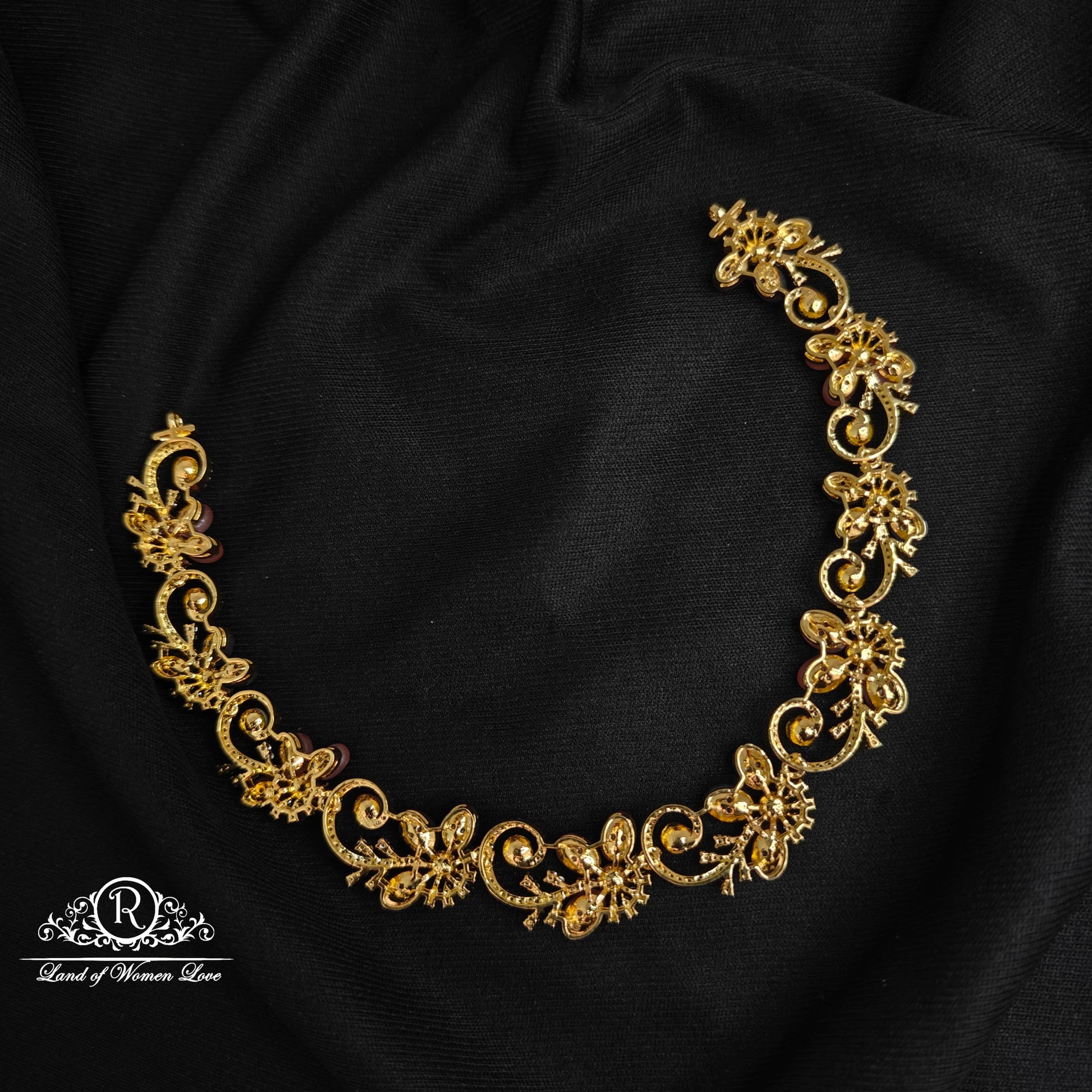 92.5 Silver with gold polish fushion collection gem stones necklace 9 inches length necklace with earrings bombay screw pattern design by ramalacollections