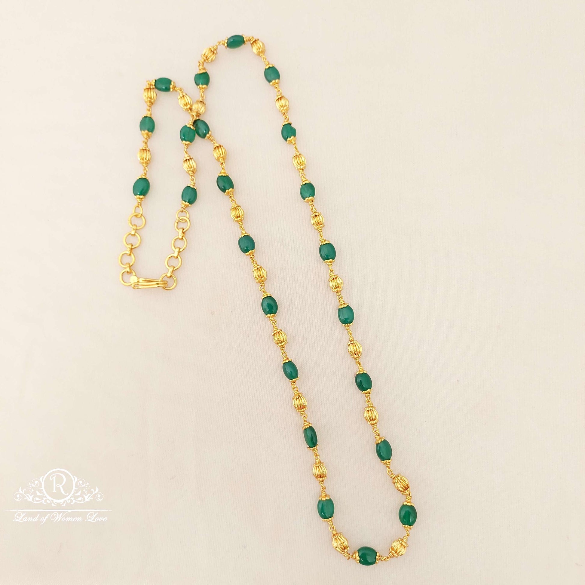 92.5 Silver Jewelry Beautiful Silver Gold Balls With Green Beads Chain Designs With 22k Gold Coating With 22" Inches. From Ramalacollections L