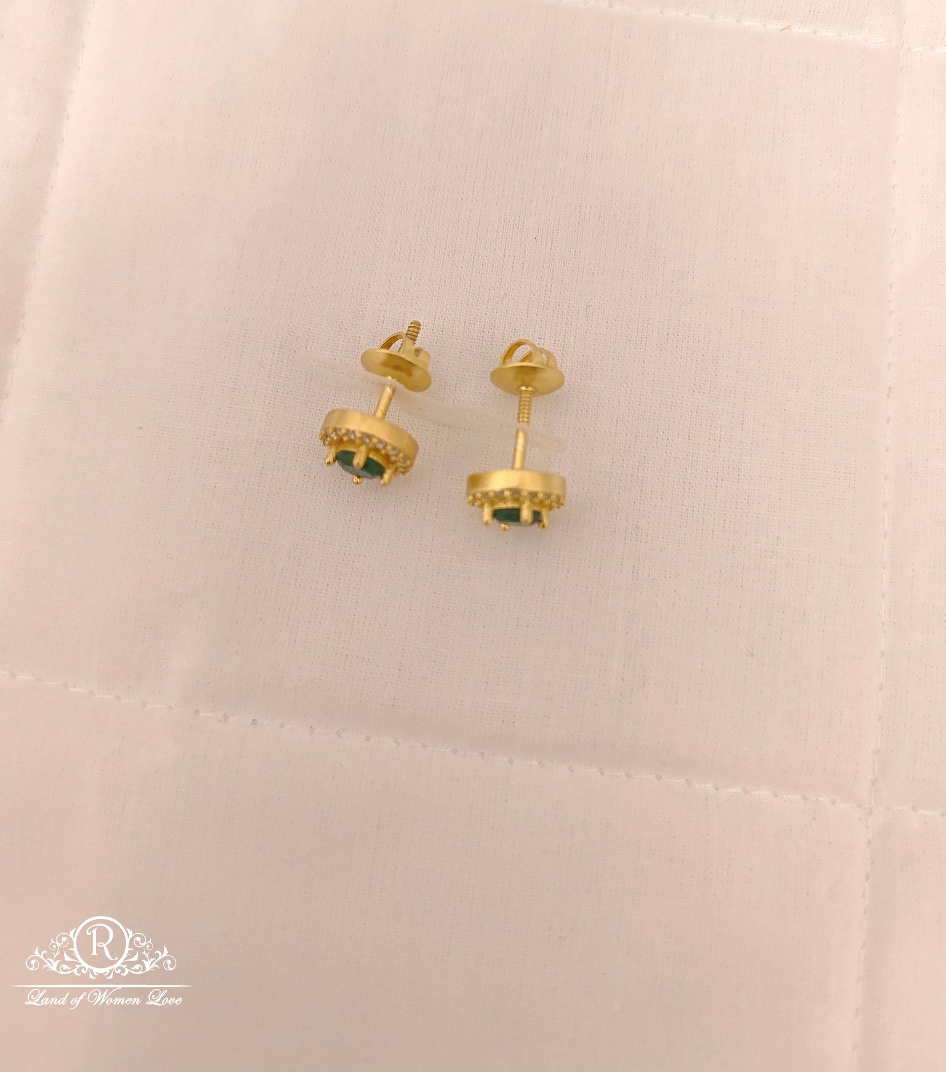 92.5 Silver Jewelry Beautiful Small Stud Earrings Designs With 22k Gold Coating With White Stones Middle Green Stone With Backside Screw Type .From Ramalacollections