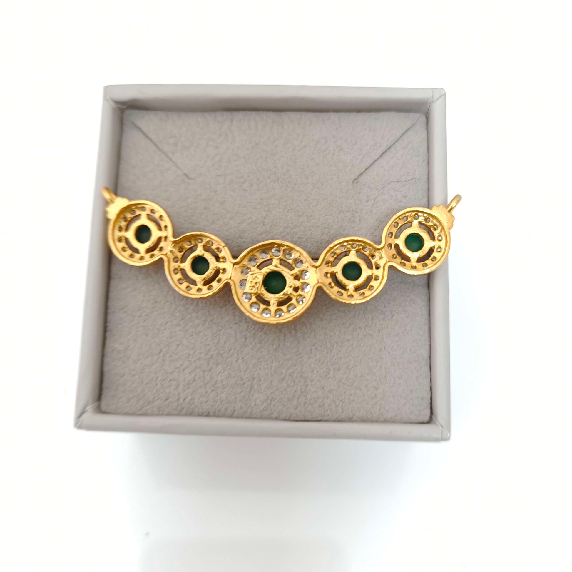 92.5 Silver base gold polish Mala Locket with white & green stones back side 2 hooks model by ramalacollections