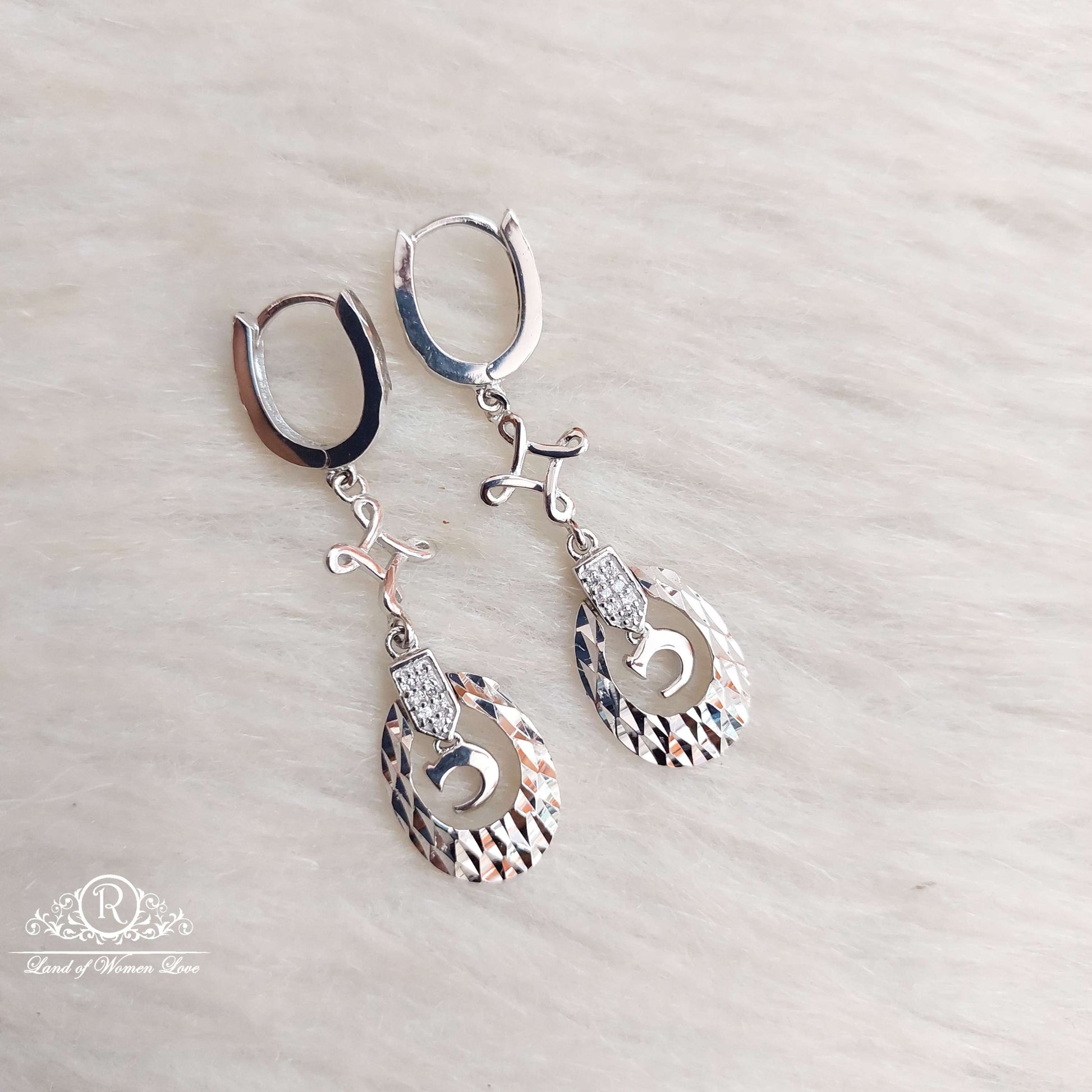 92.5 Silver Jewelry Beautiful Light weight Hanging Earrings Designs With White stones with 1" inches . From Ramalacollections