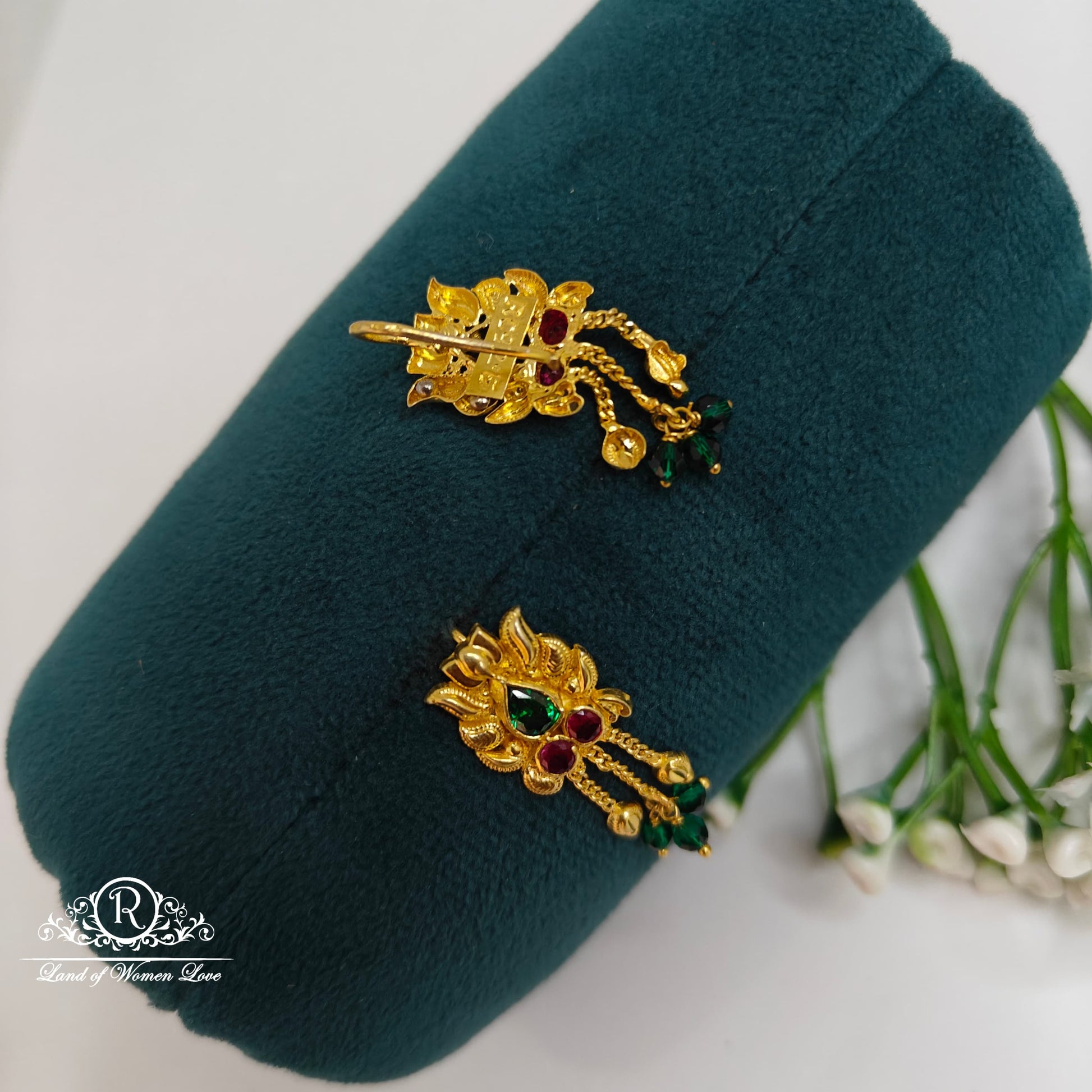 92.5 Silver with gold polish hanging hook model earrings flower design beads hanging 1.1 inches length kids also wear light weight earrings designs by ramalacollections