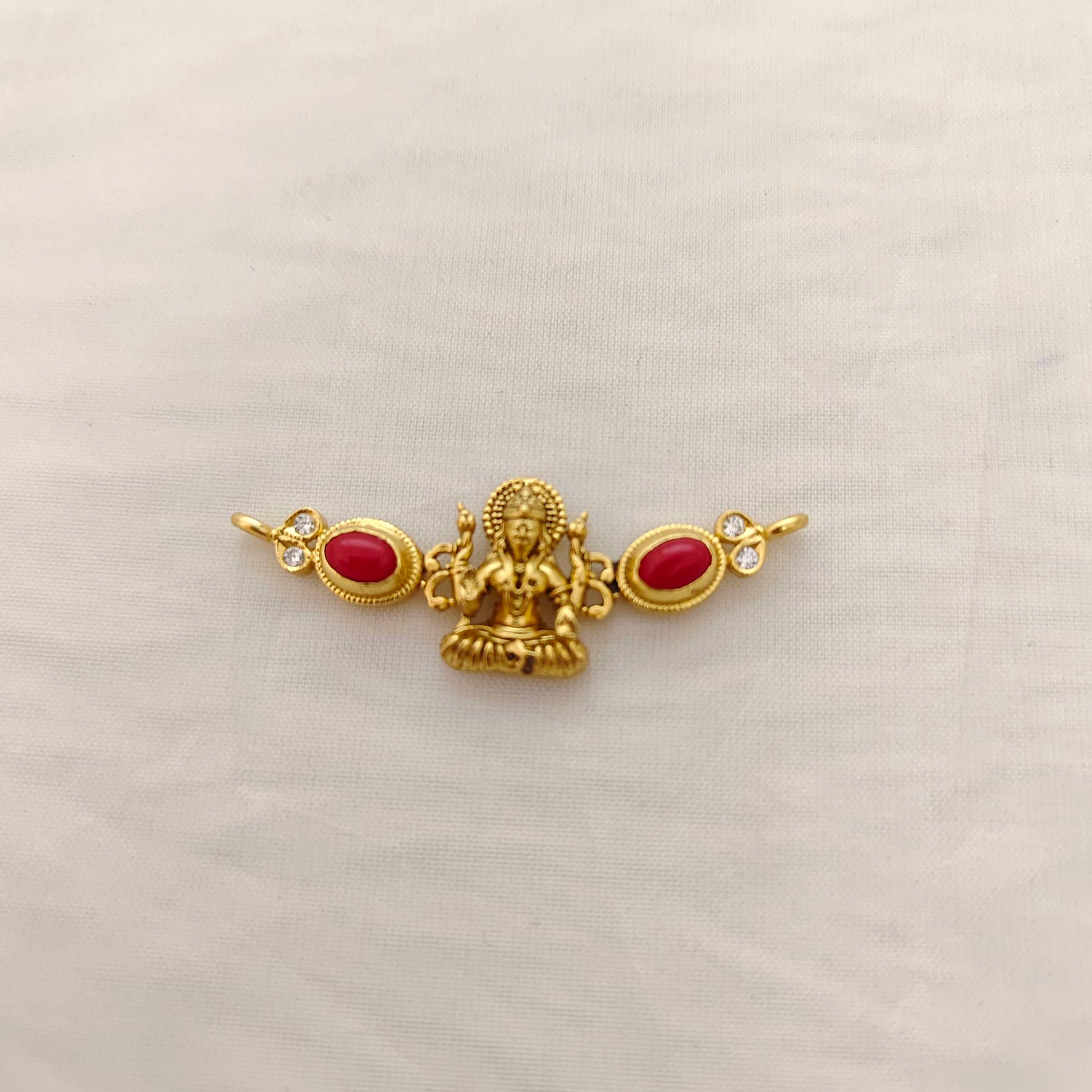 Silver base gold polish lakshmi devi locket coral with semi precious white stone combination small lockets u can use any beads chains sets designs by ramalacollections