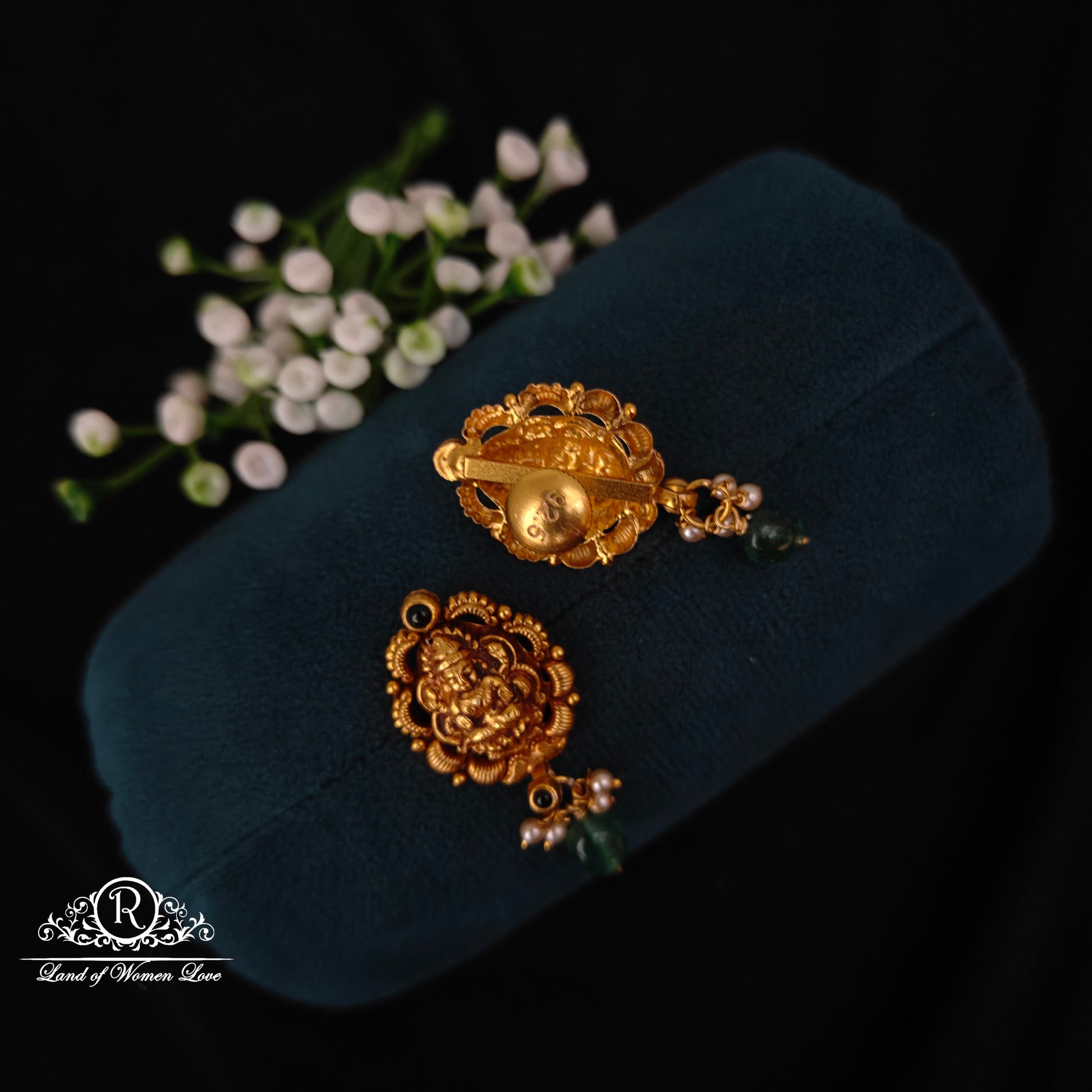 92.5 silver Lakshmi Devi Design earrings with gold polish design by Ramala collections