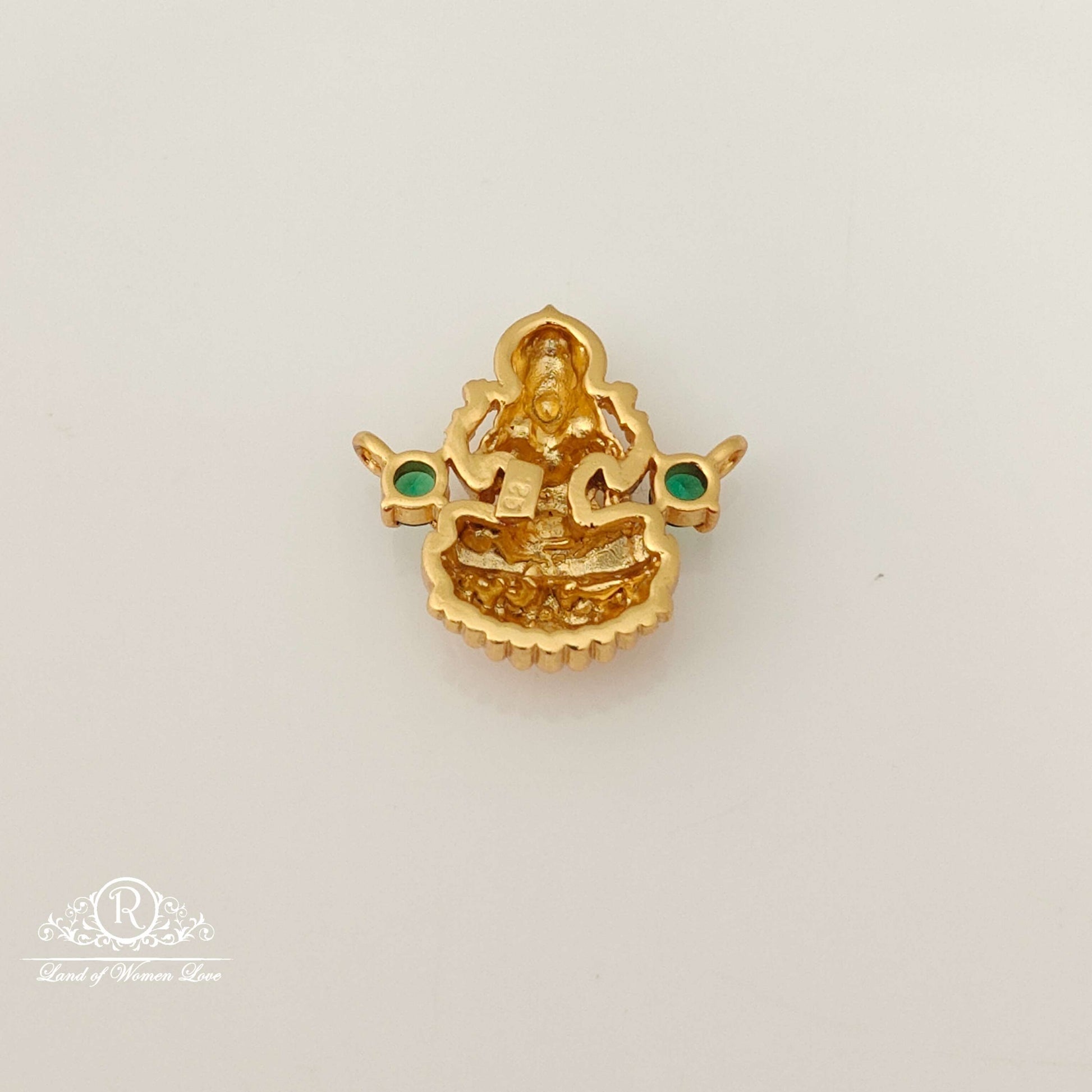 92.5 Silver base gold polish beautiful lakshmidevi small locket design with green stones by Ramala Collections