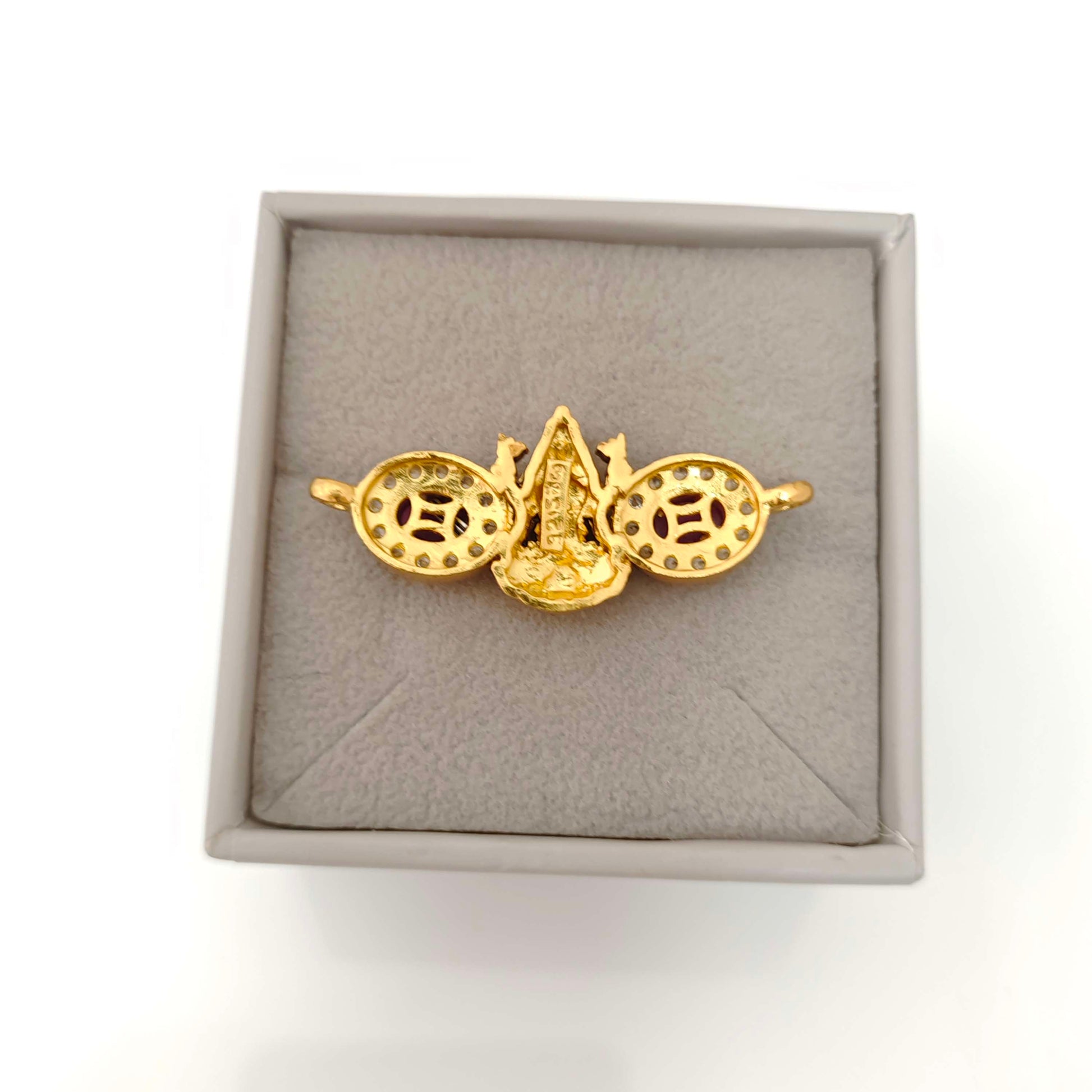 92.5 Silver base gold polish Lakshmi Devi Mala Locket with white & kempu stones back side 2 hooks model by ramalacollections