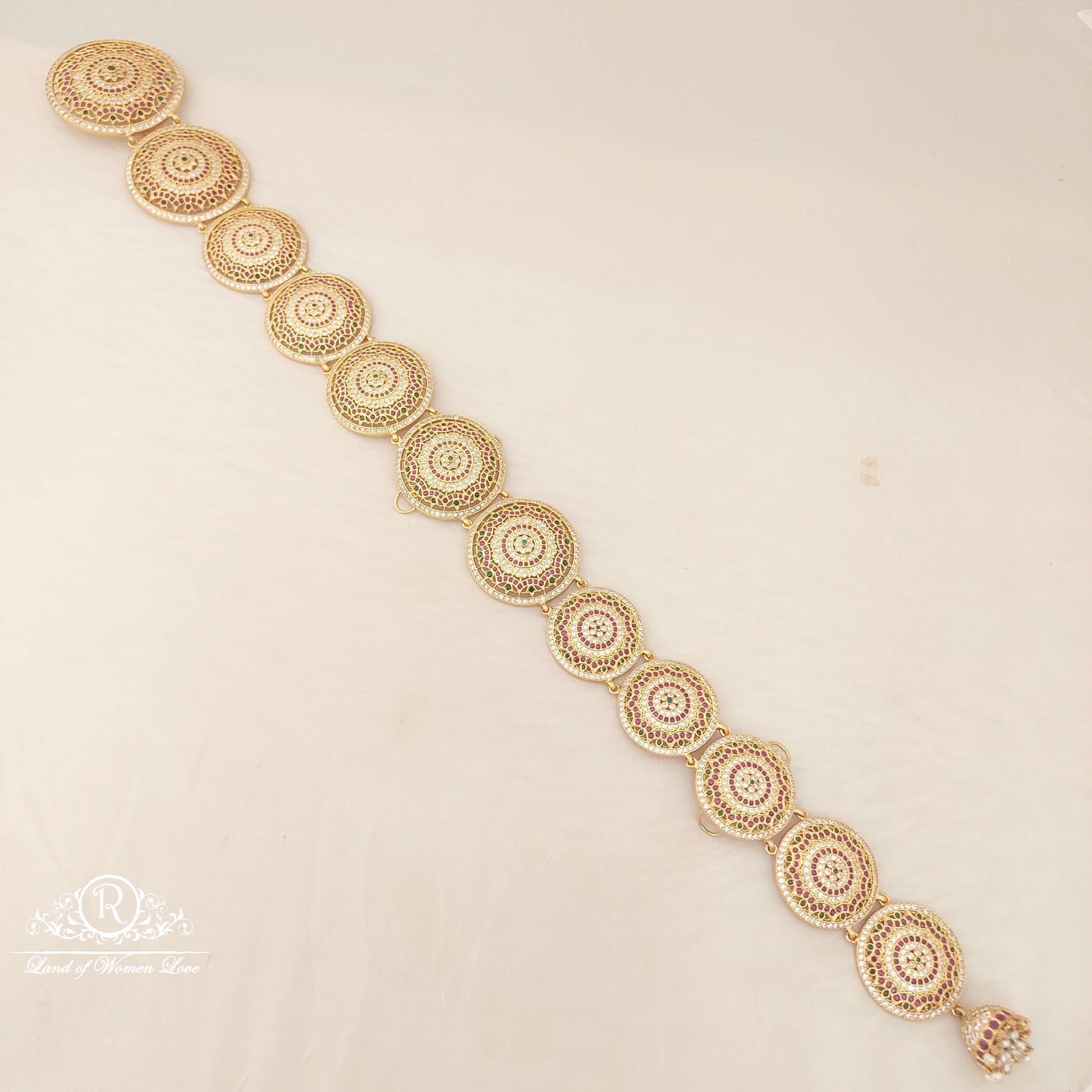 92.5 Silver Jewelry Beautiful Long Jada billalu Designs With 22k Gold coating With White Stones middle Green & Kempu stones With 20.5" Inches Hanging Pearls. From Ramalacollections