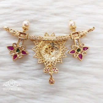 92.5 Silver Jewellry Beautiful Mala Lockets Flower Designs with White Stones Middle Kempu And Green Stones with 22k Gold Coating we used Black beads also From Ramala Collections