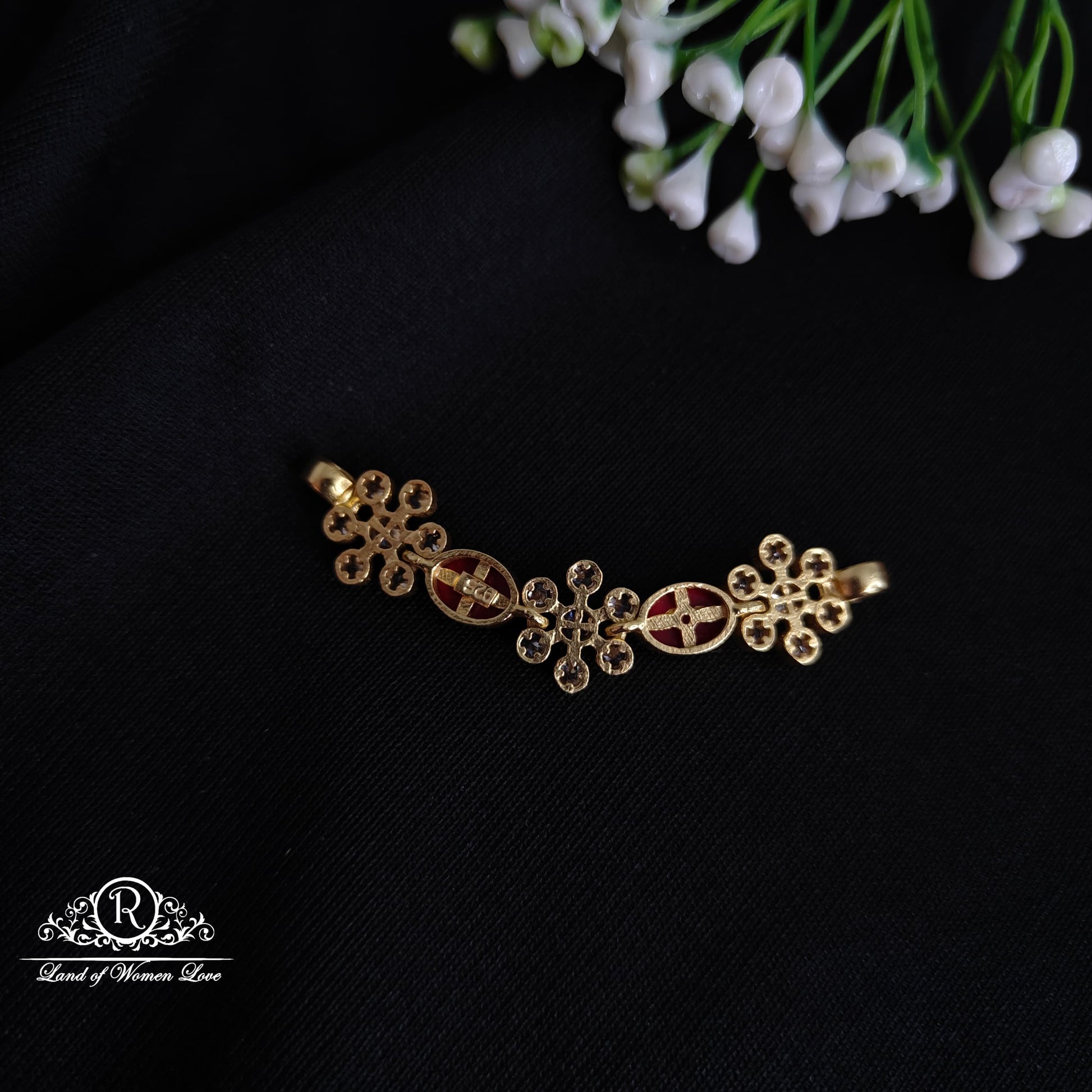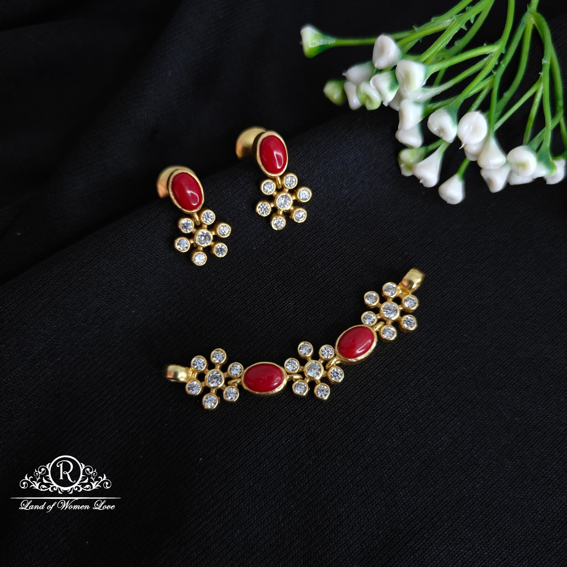 92.5 Silver base gold polish coral stone with 7 white stone studs model mala locket 2.2 linches length design by ramalacollections