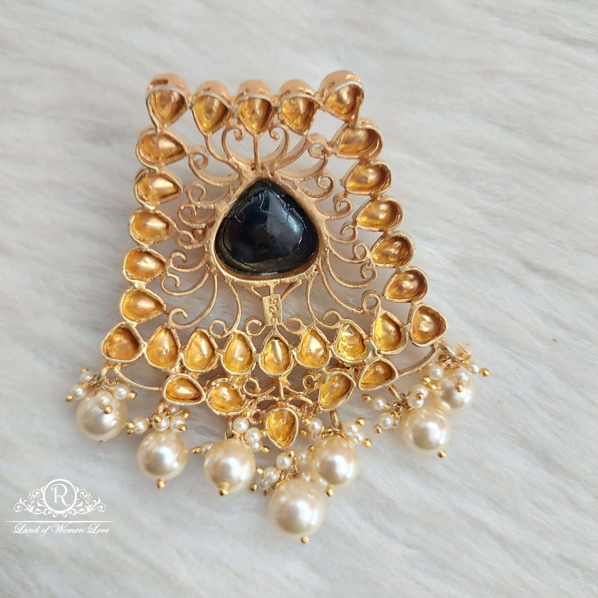 92.5 Silver Jewelry Beautiful Locket Designs With White Stones middle Black Stone With 22k Gold coating with 2" Inches Hanging pearls design. From Ramalacollections