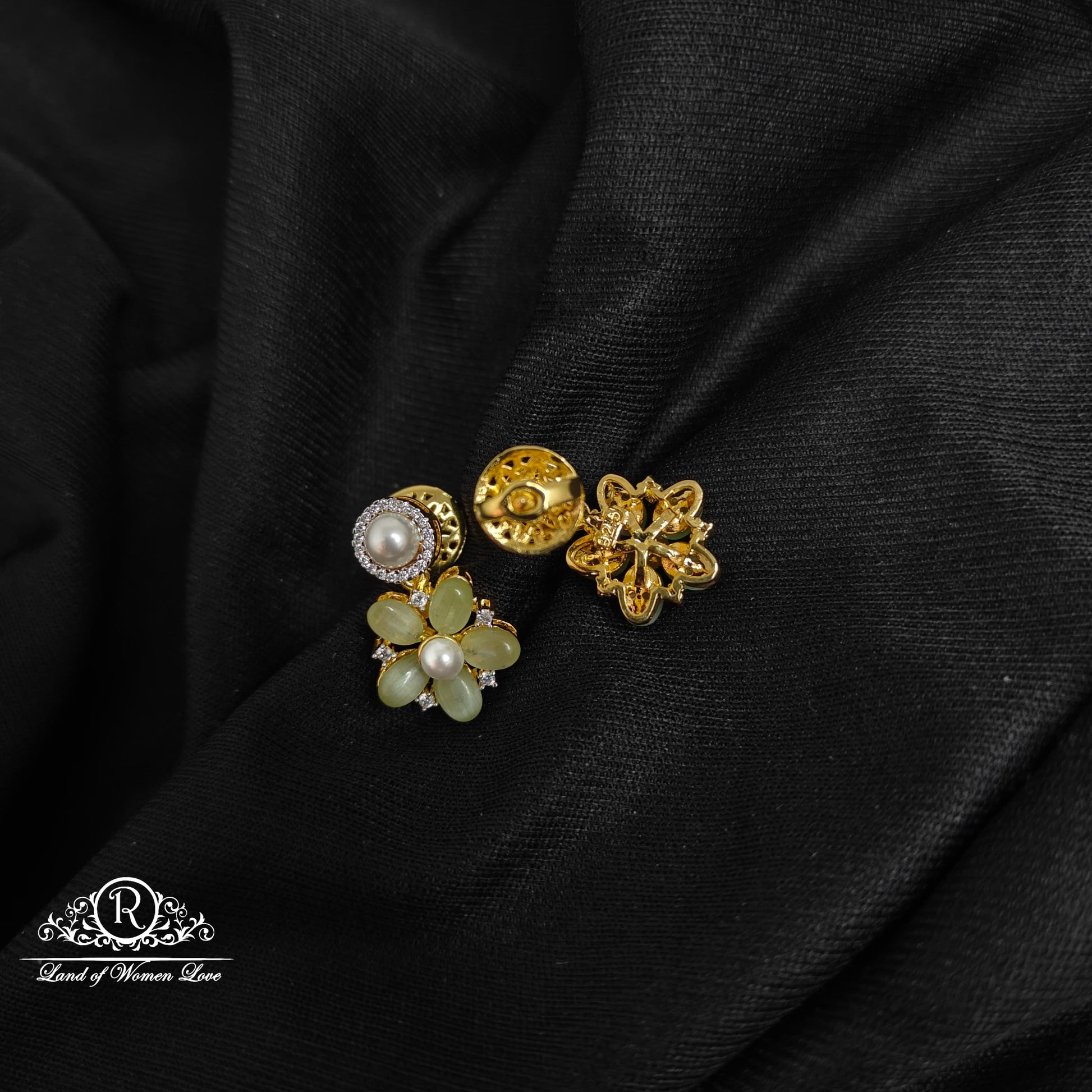 92.5 Silver with gold polish fushion collection gem stones necklace 9 inches length necklace with earrings bombay screw pattern design by ramalacollections