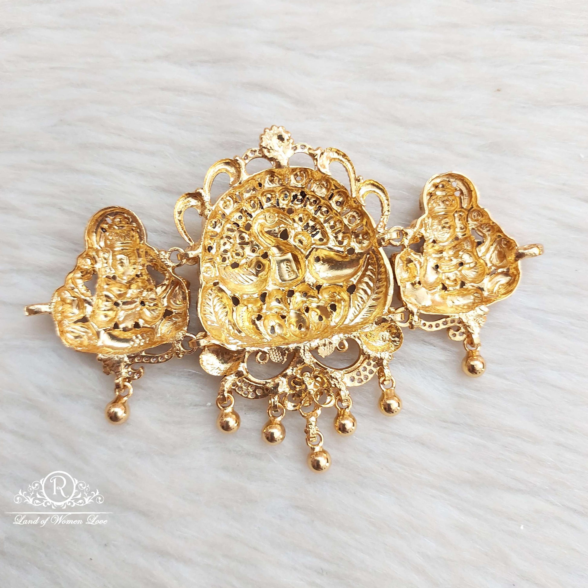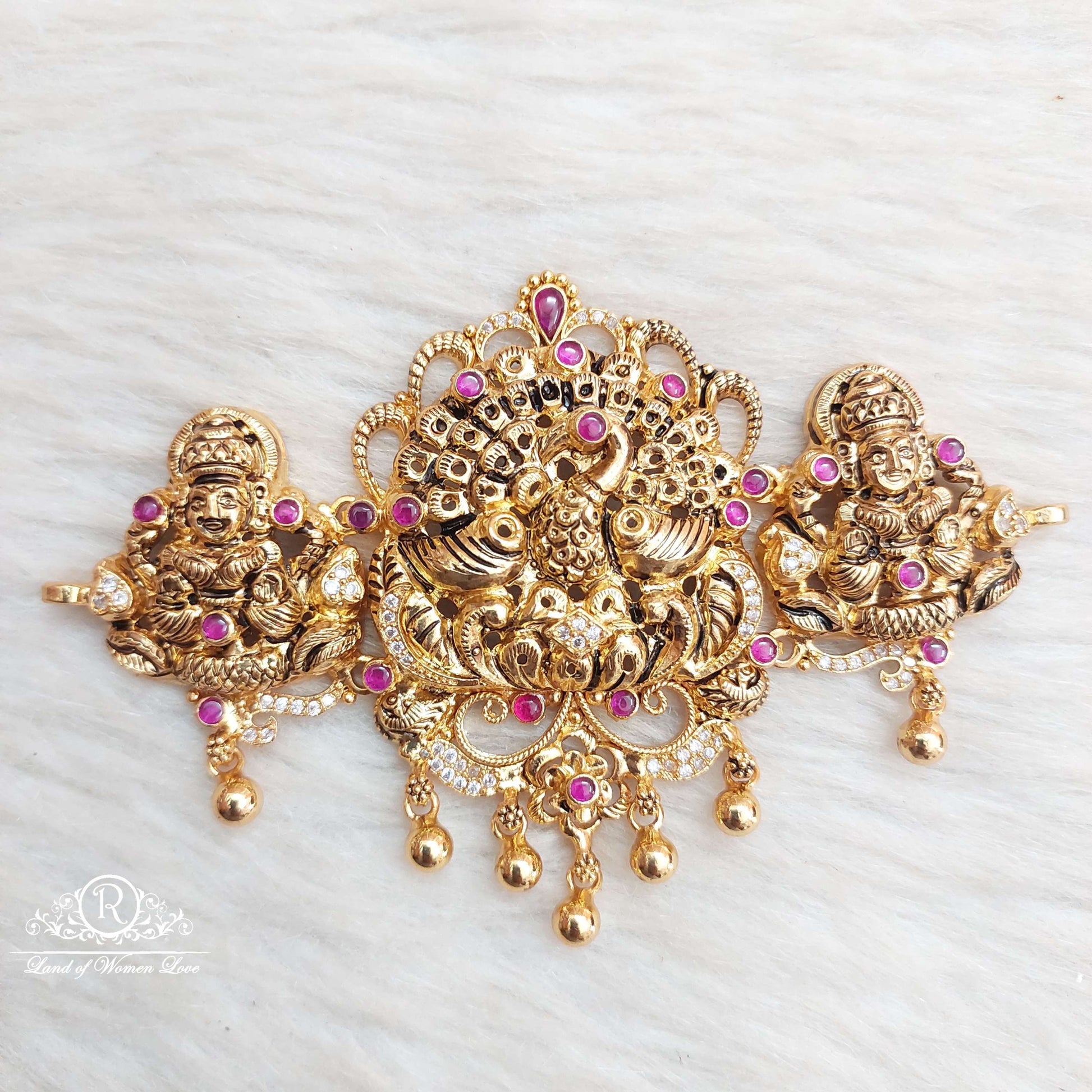 92.5 Silver Jewelry Beautiful Nakshi Lakshmi Devi Peacock Chocker Designs With 22k Gold Coating With White Stones Middle Kempu Stones With Hanging Silver Gold Balls With 4" Inches. From Ramalacollections
