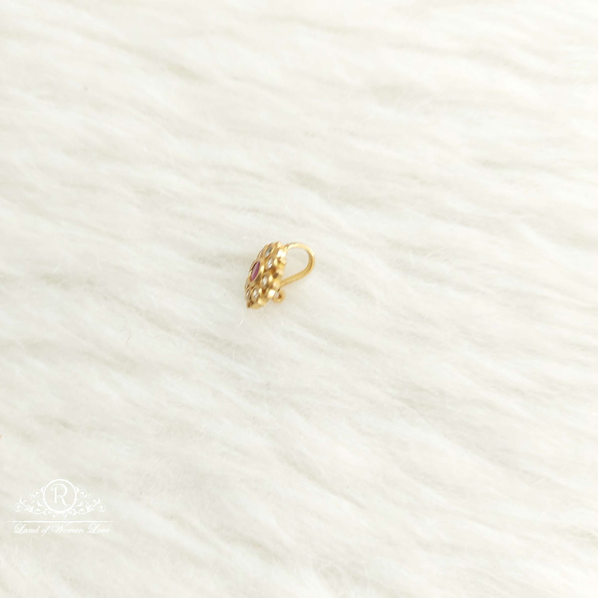 92.5 Silver Jewelry Beautiful Nose Pin Designs With White Stones Middle Kempu Stone With BackSide Pressing Type.From Ramalacollections