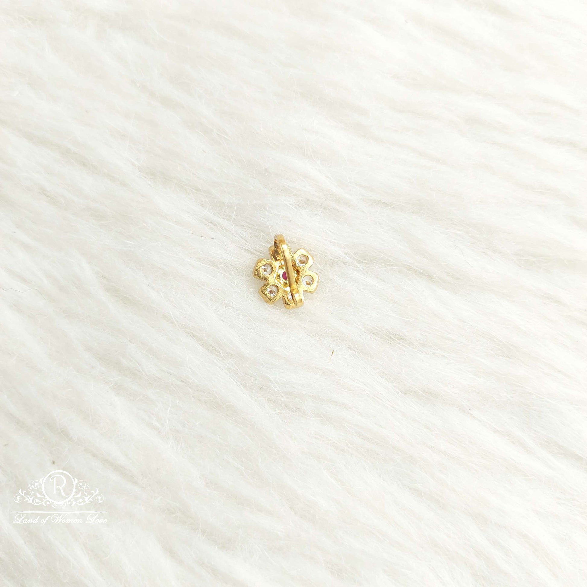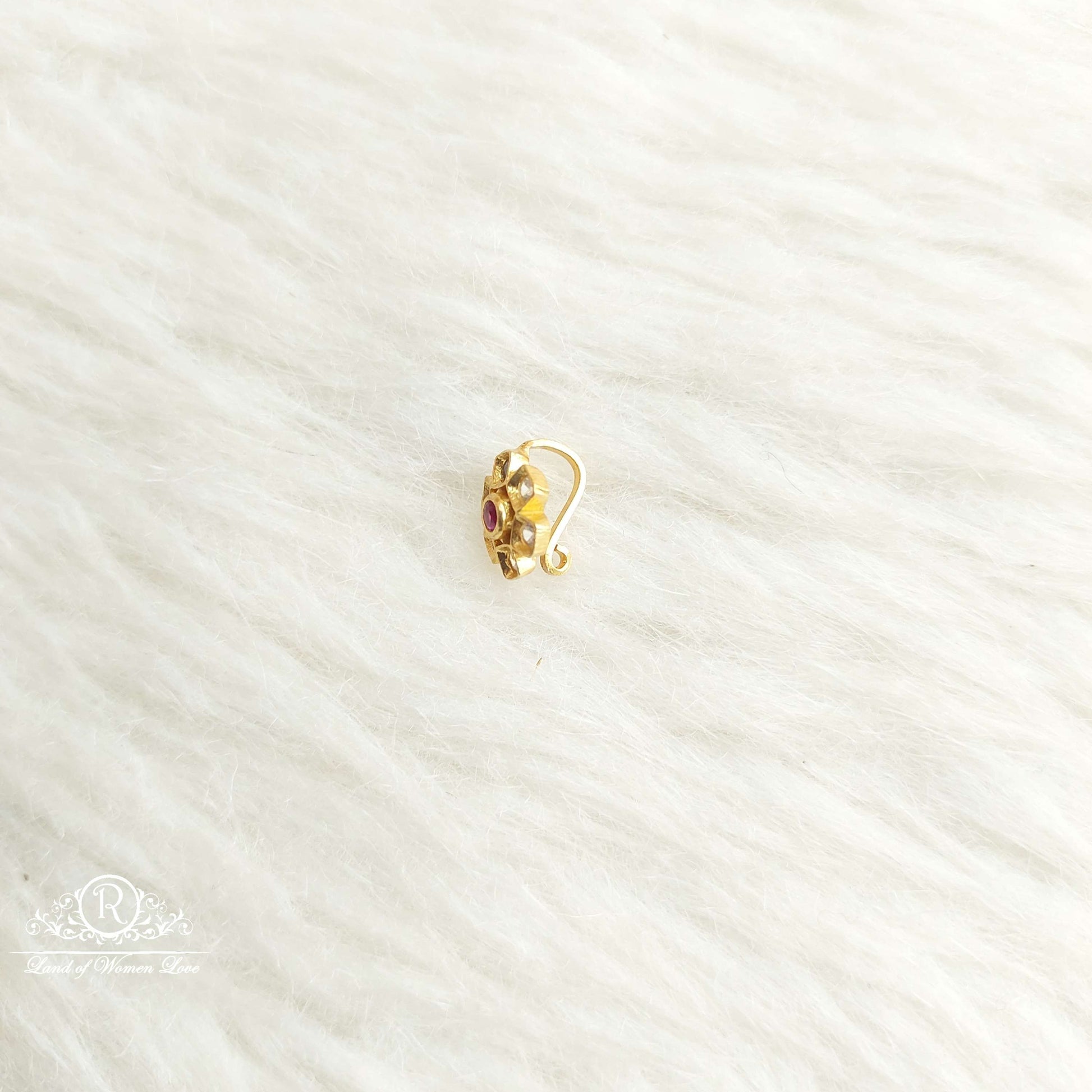 92.5 Silver Jewelry Beautiful Nose Pin Designs With White Stones Middle Kempu Stone With BackSide Pressing Type.From Ramalacollections