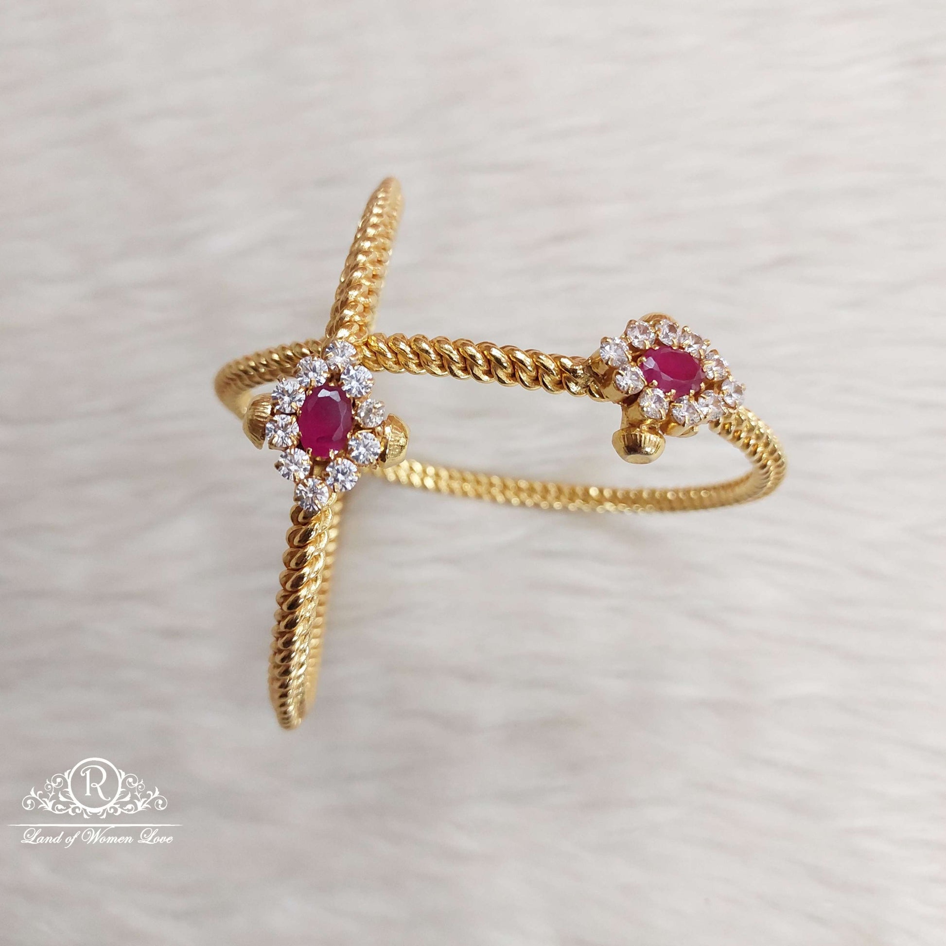 92.5 Silver Jewelry Beautiful Bangles With Open model Designs With White and Kempu Stones with 22k Gold coating with 2.9" size.From Ramalacollections