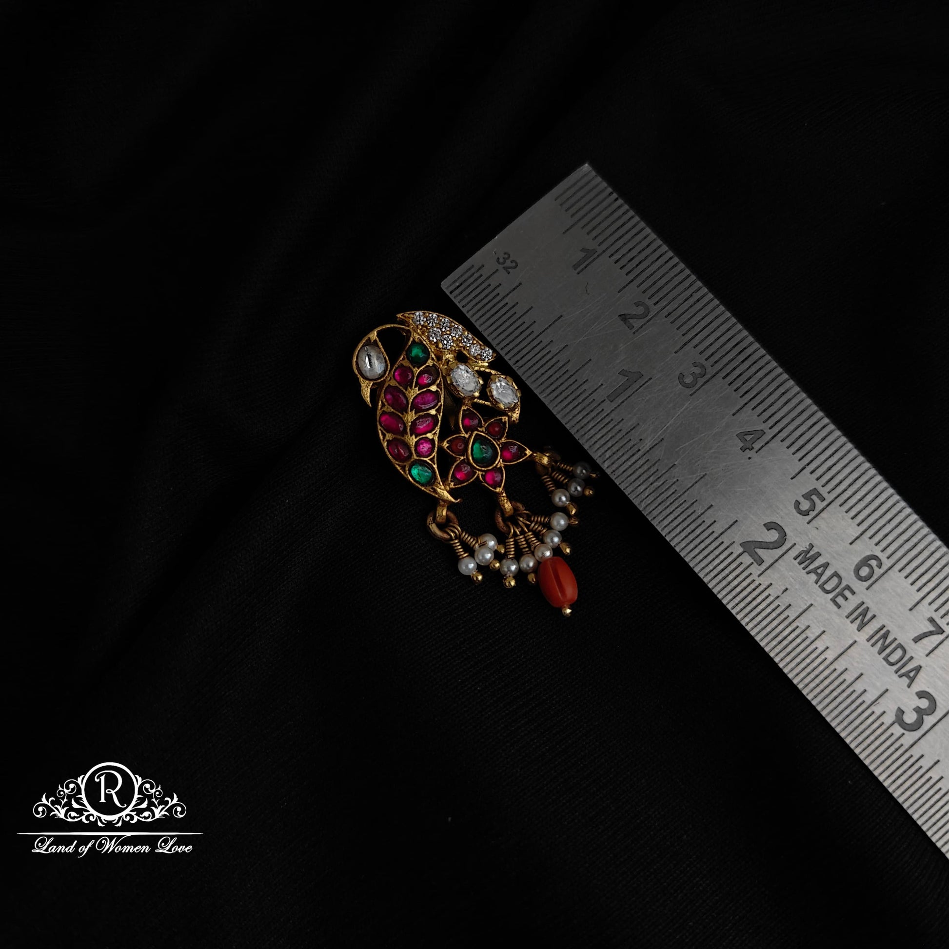 92.5 Silver with gold polish kundan pendant peacock design back openable hook model cz stones mixed with kundan stones 1.7 inches length design by ramalacollections