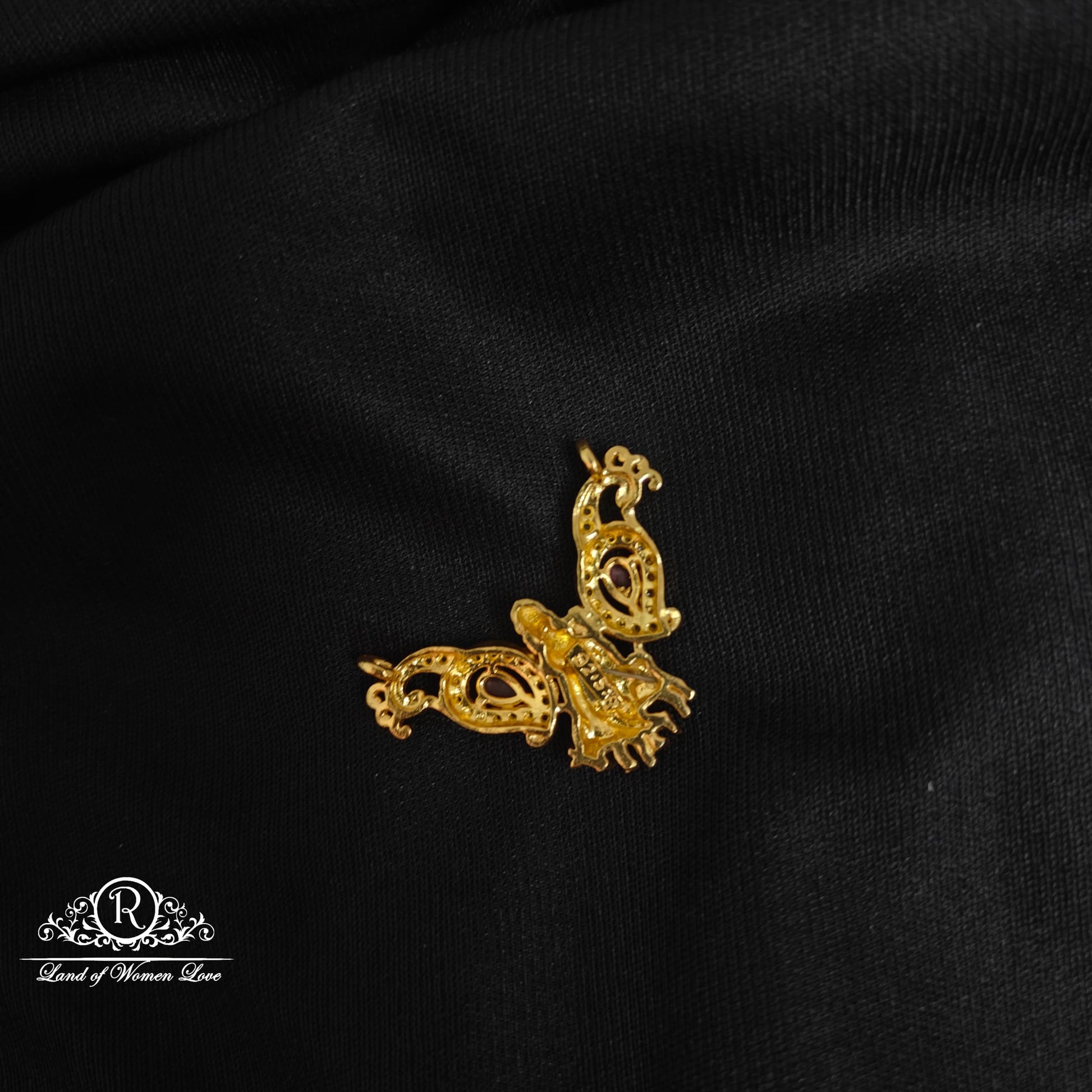 92.5 Silver base gold polish ruby stones peacock design locket 1.2 inches length design by ramalacollections