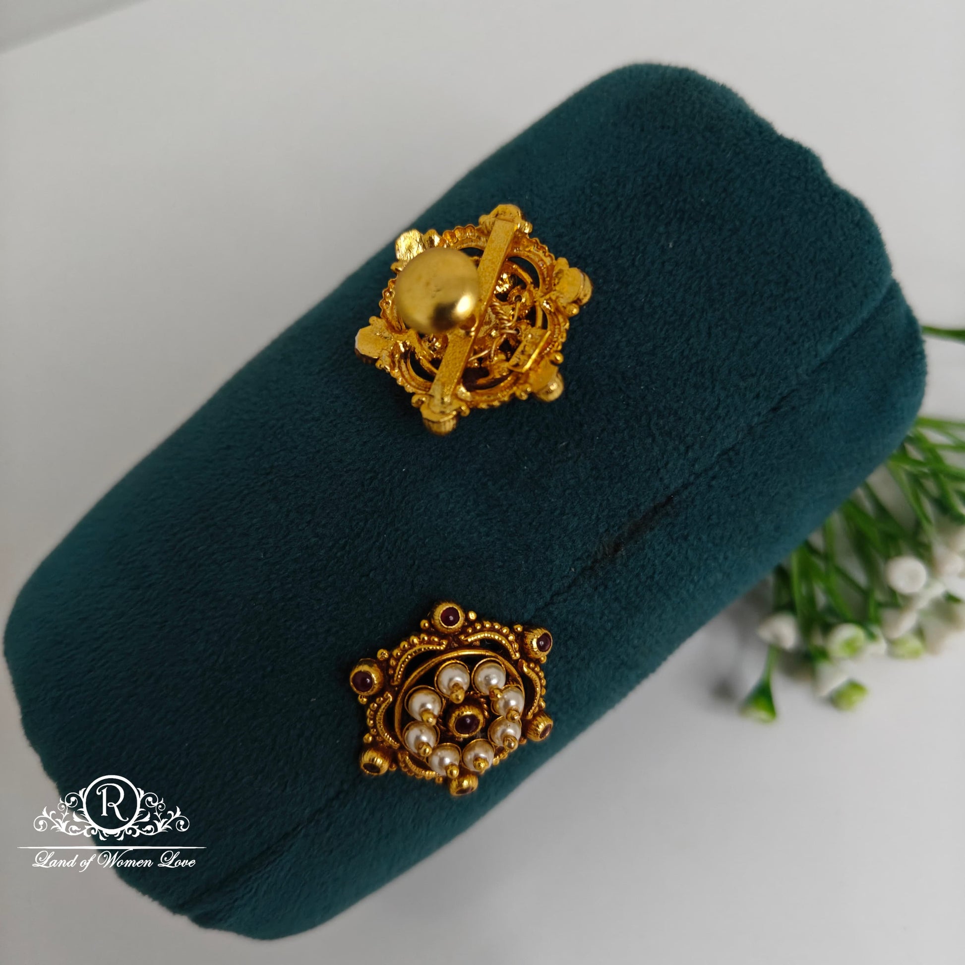 92.5 Silver with gold polish beautiful elegant look earrings pearls studs model southscrew pattern 1 inches length design by ramalacollections