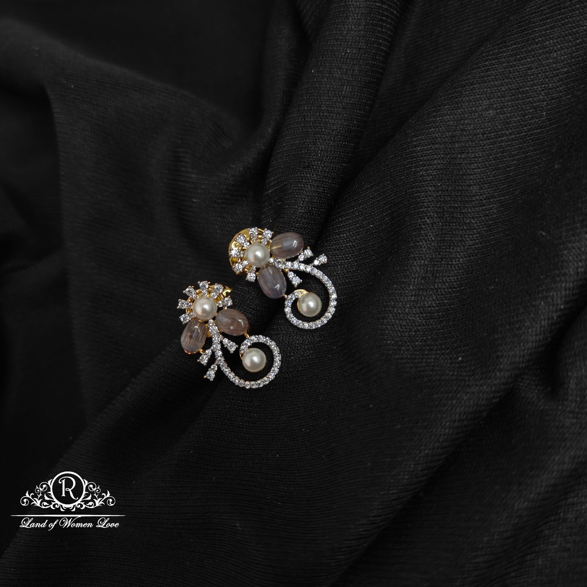 92.5 Silver with gold polish fushion collection gem stones necklace 9 inches length necklace with earrings bombay screw pattern design by ramalacollections