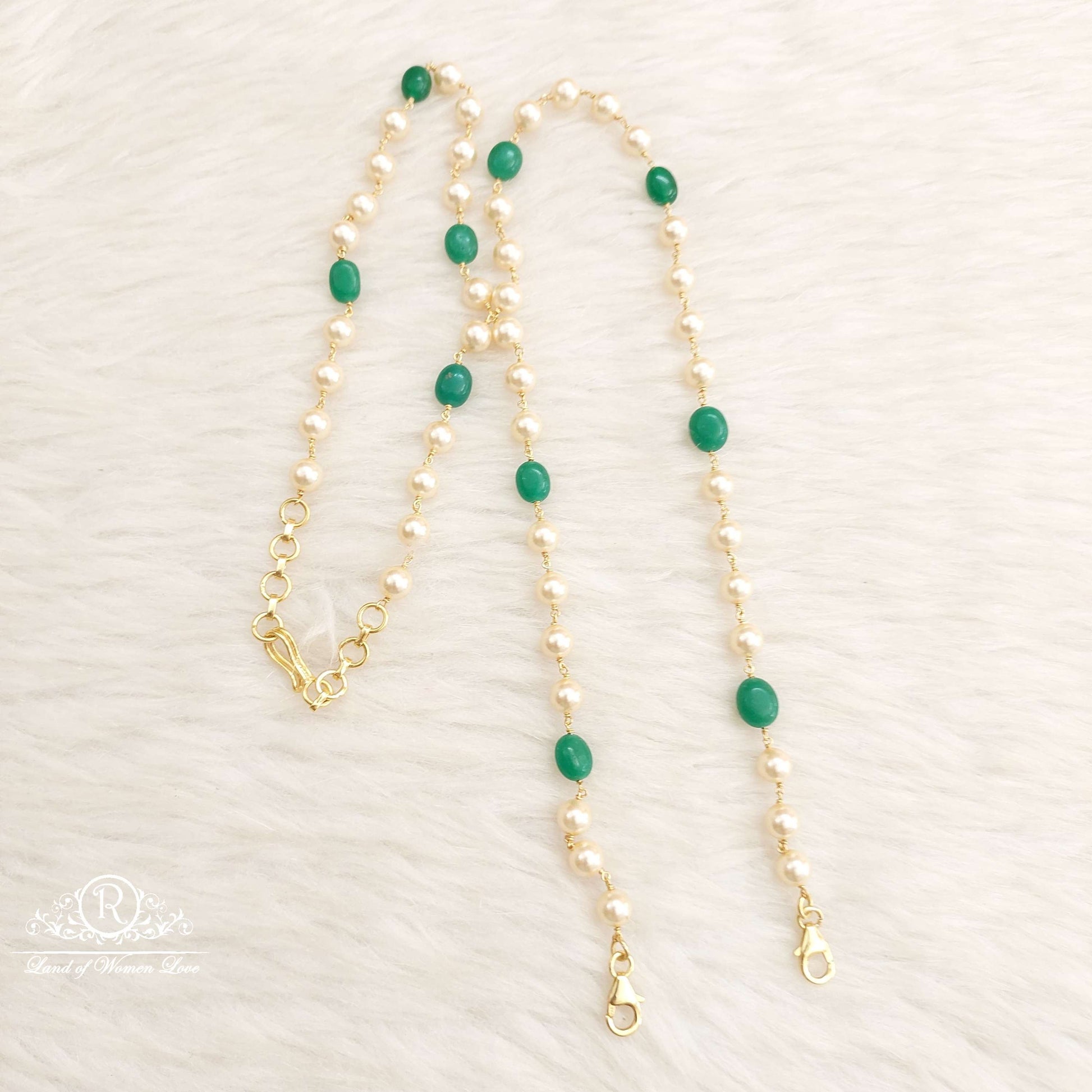 92.5 Silver jewelry Pearls chain designs with gold coating with 22 inches
