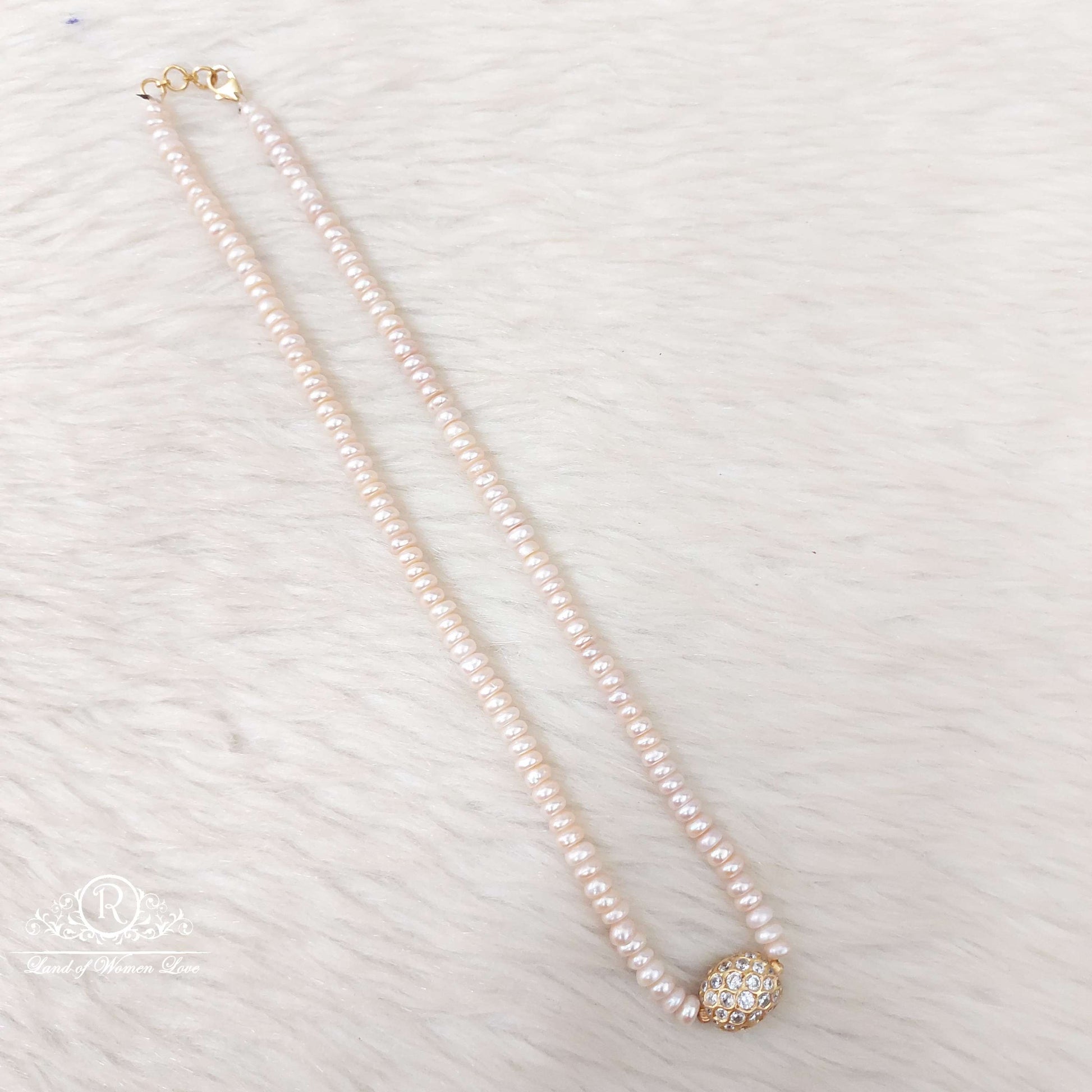 92.5 Silver Jewelry Beautiful Real Beads Pearls Chain With Middle Gold Ball Designs With White Stones With 22k Gold Coating With 18" inches.From Ramalacollections
