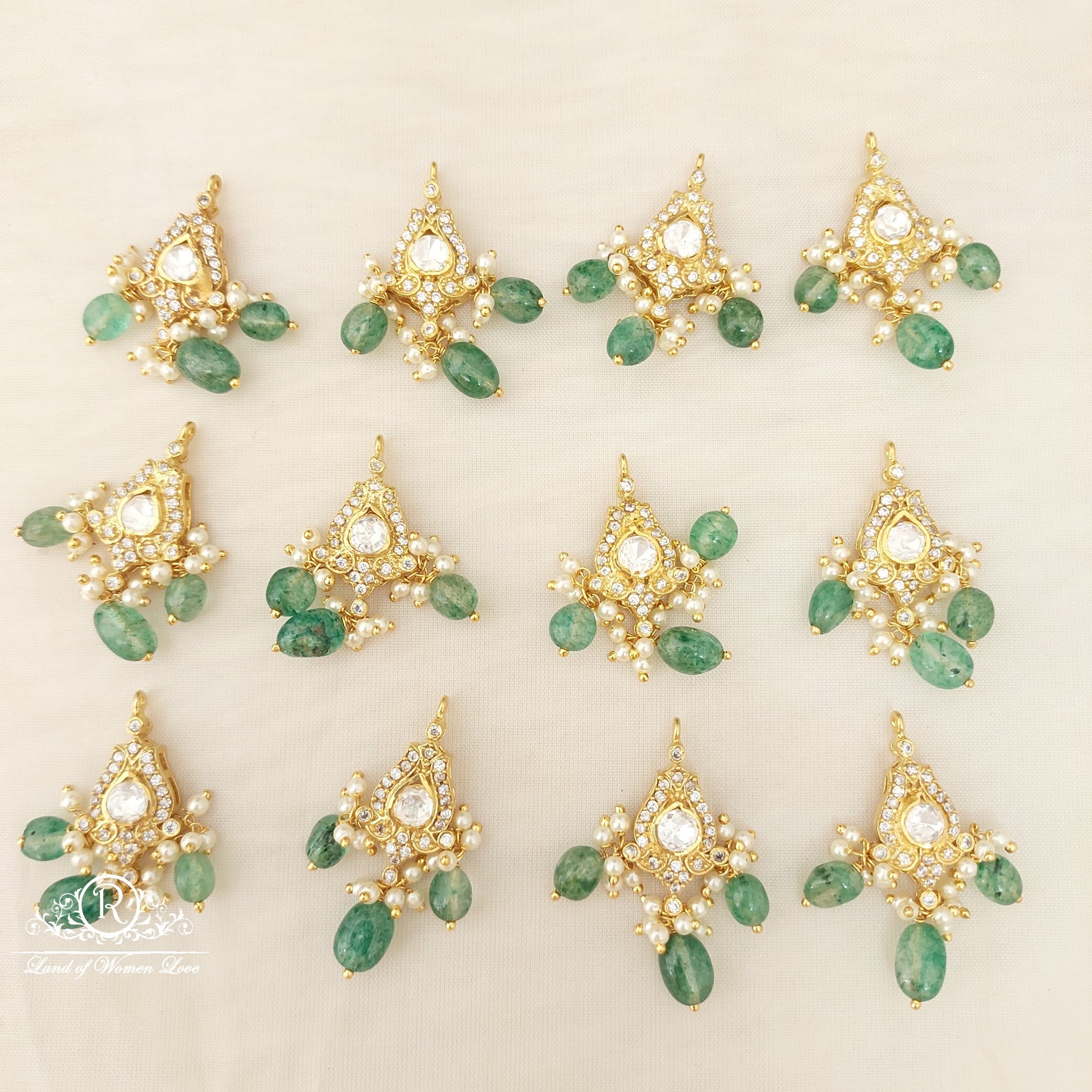 Silver base gold polish with green beads hanging Mosiznites Stones pendant model