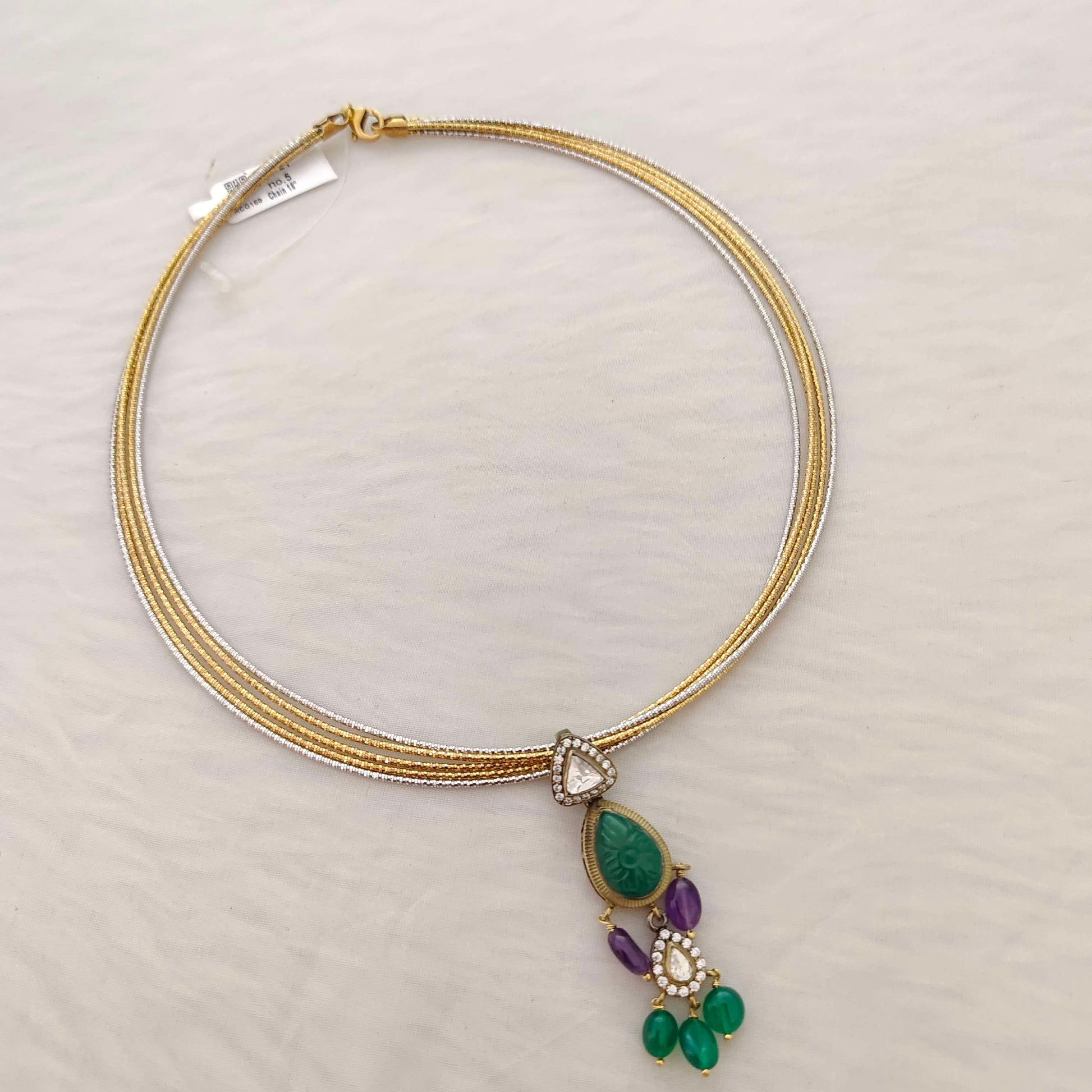 Silver base gold polish mossinaite pendant u can wear any changes back openable hook 2.2 inches length design by ramalacollections
