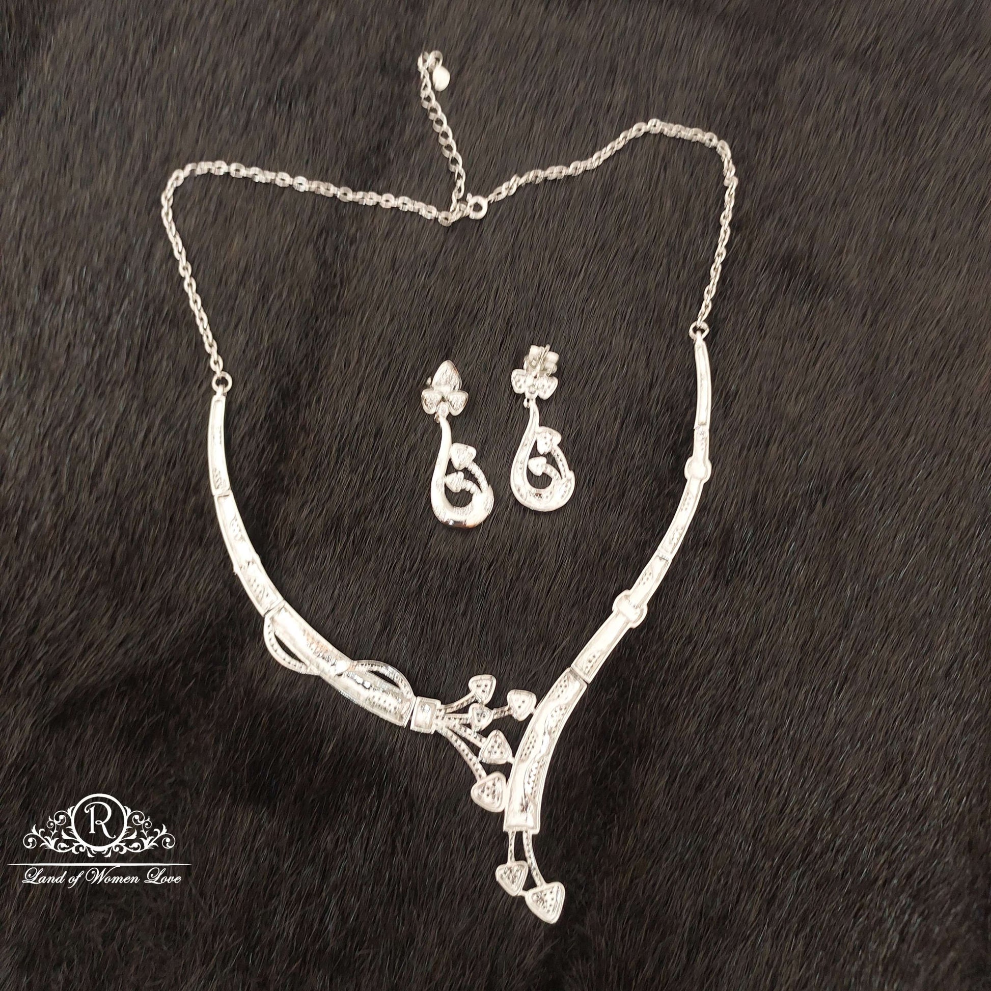 Silver Jewelry Beautiful Necklace With Earrings Designs With Platinum polish With White Stones With 18" Inches .From Ramalacollections