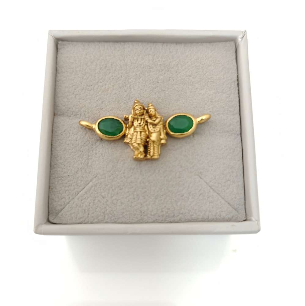 92.5 Silver base gold polish Radha Krishna Mala Locket with green stones back side 2 hooks model by ramalacollections