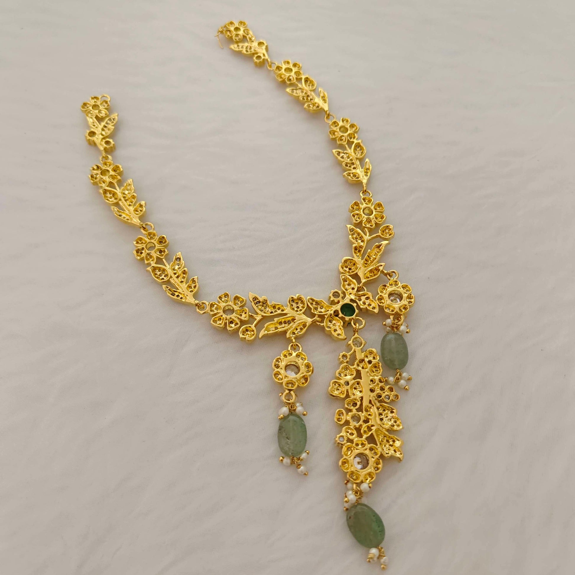 92.5 Silver Jewelry Beautiful Rose Polish Cz Necklace Designs With White stones With Hanging pearl With 16" Inches. From Ramalacollections