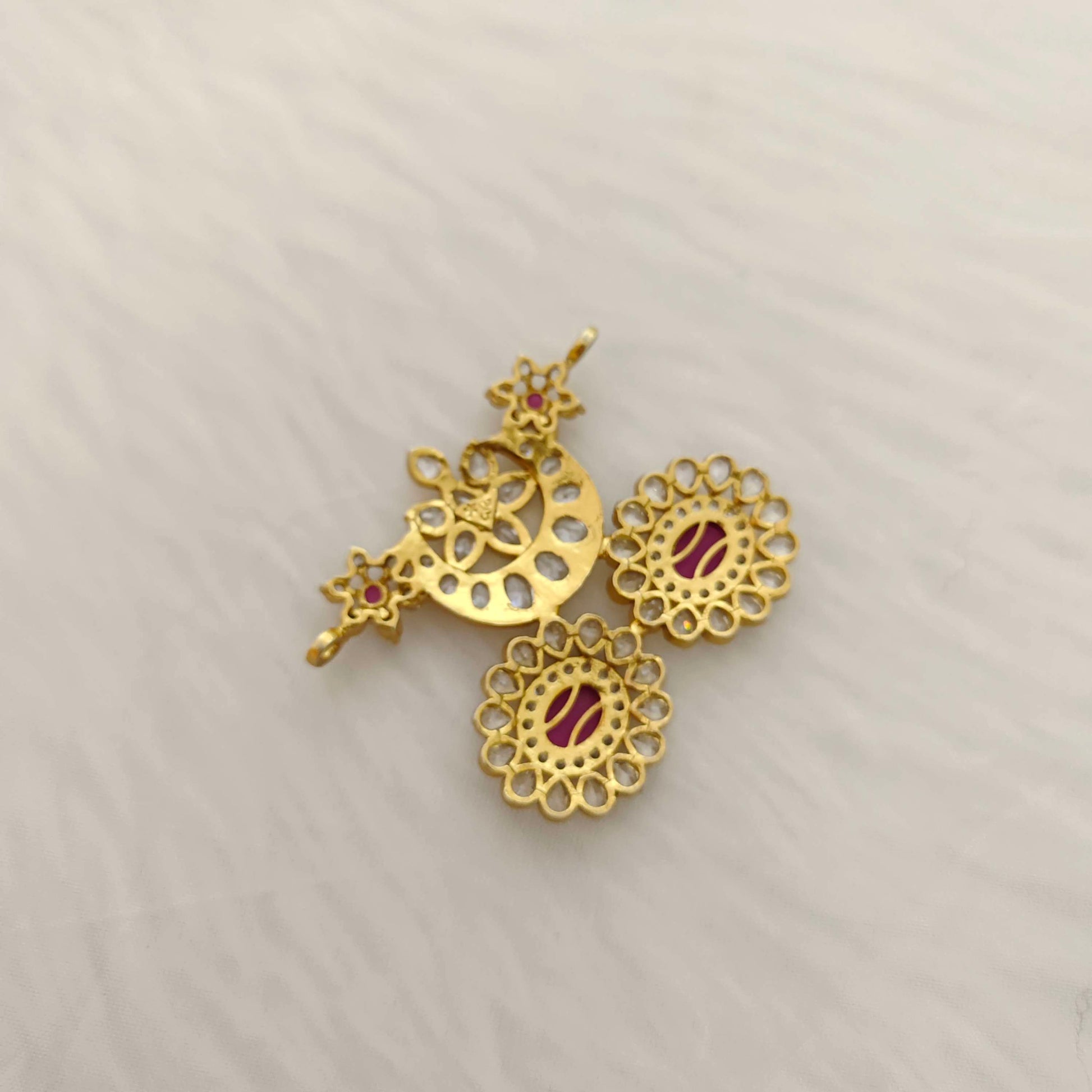 Silver base gold polish semi precious white stone locket we can use any black beads chain or customised beads chains elegant look design by ramalacollections