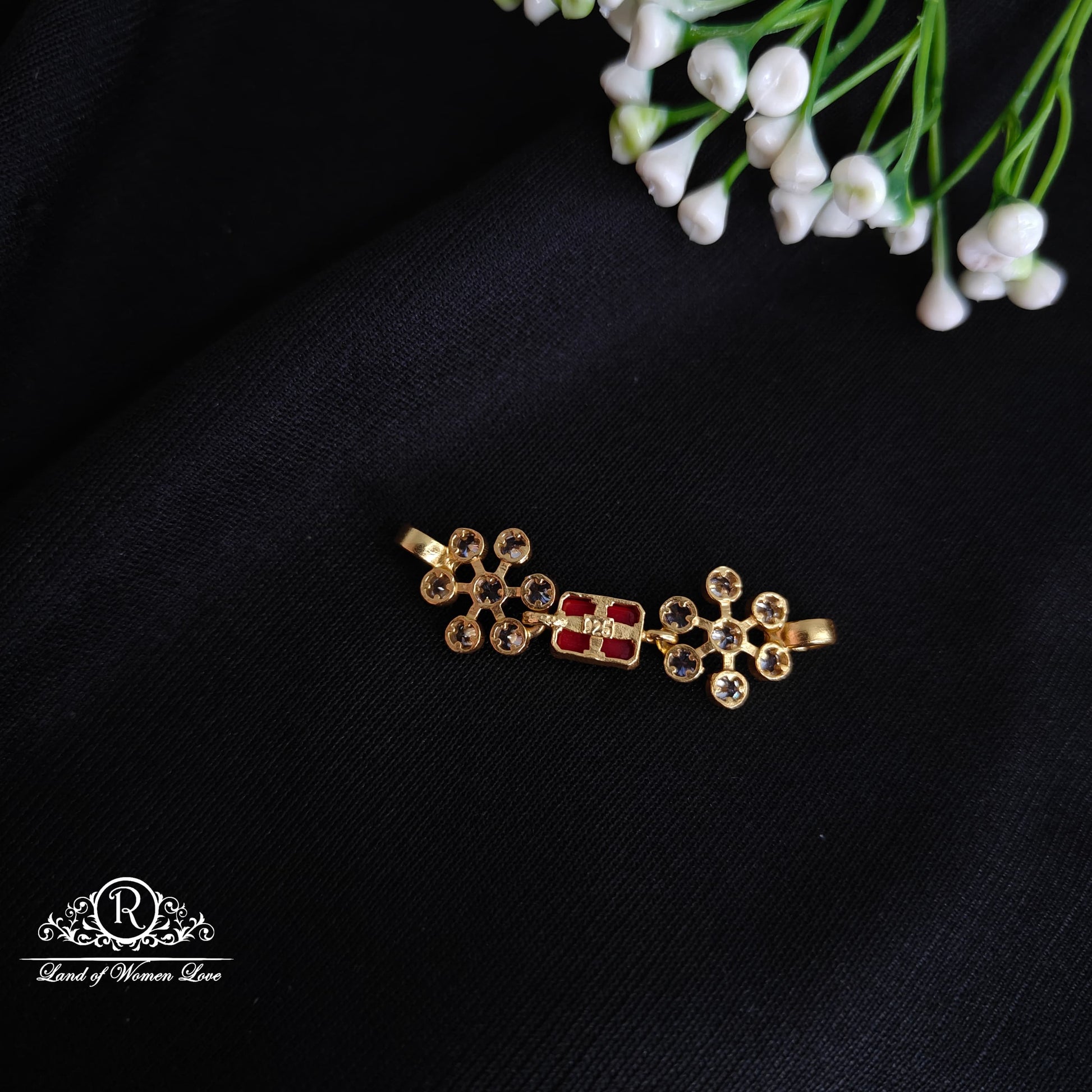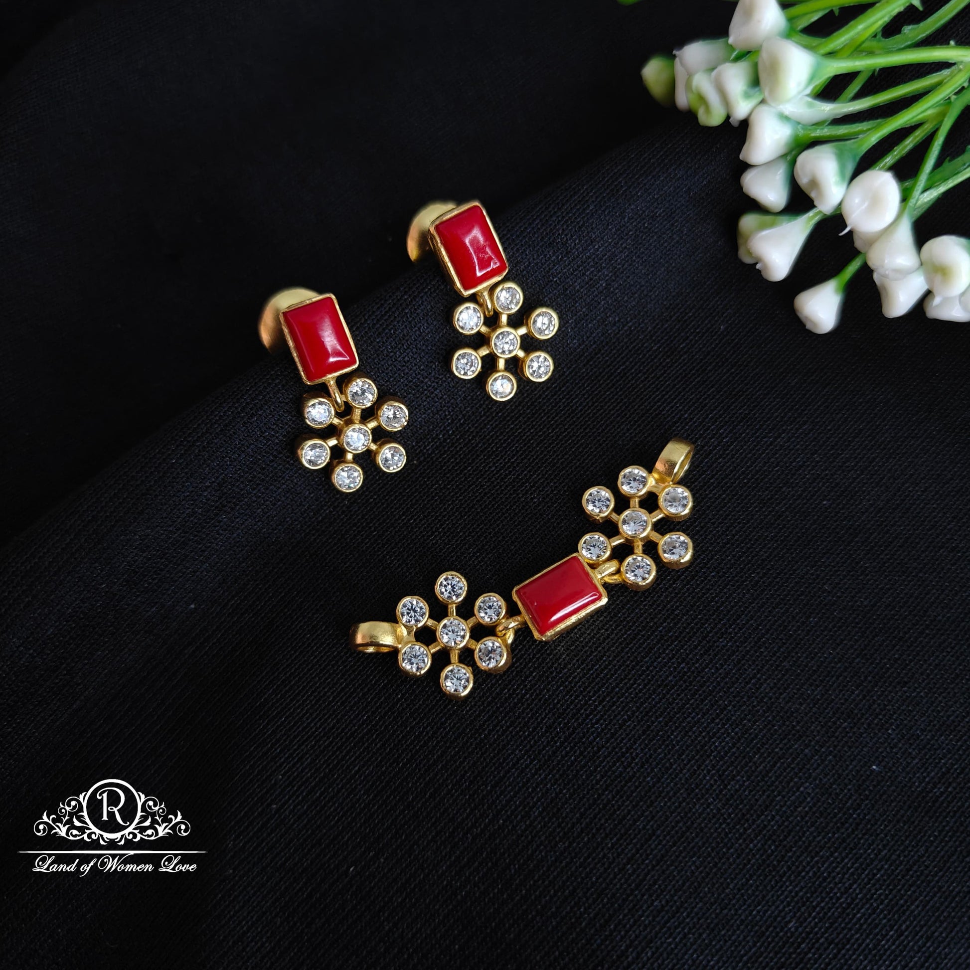 92.5 Silver base gold polish coral stone with 7 white stone studs model mala locket 2.2 linches length design by ramalacollections