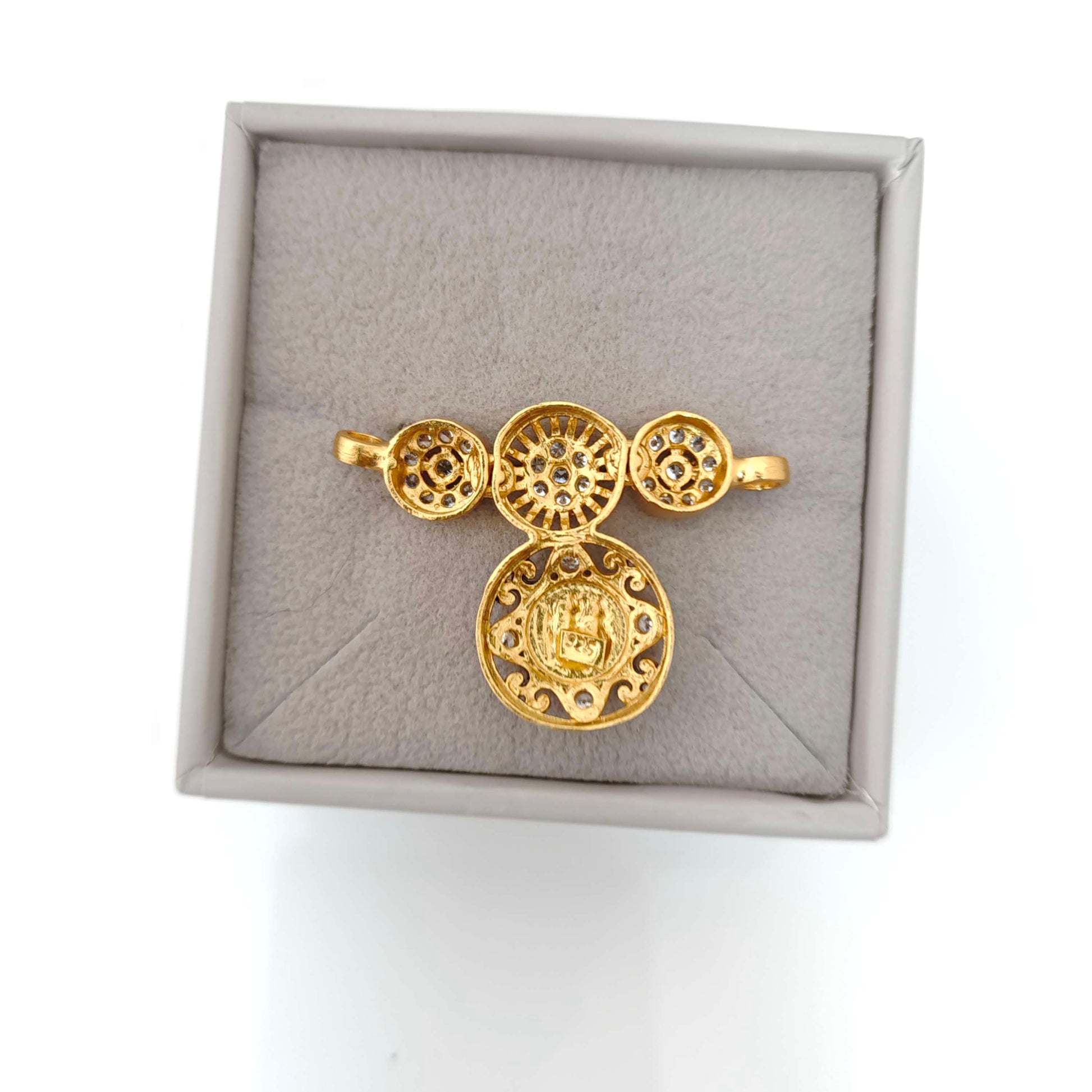92.5 Silver base gold polish Small Ramparivar Mala Locket with white stones back side 2 hooks model 1 inches length by ramalacollections