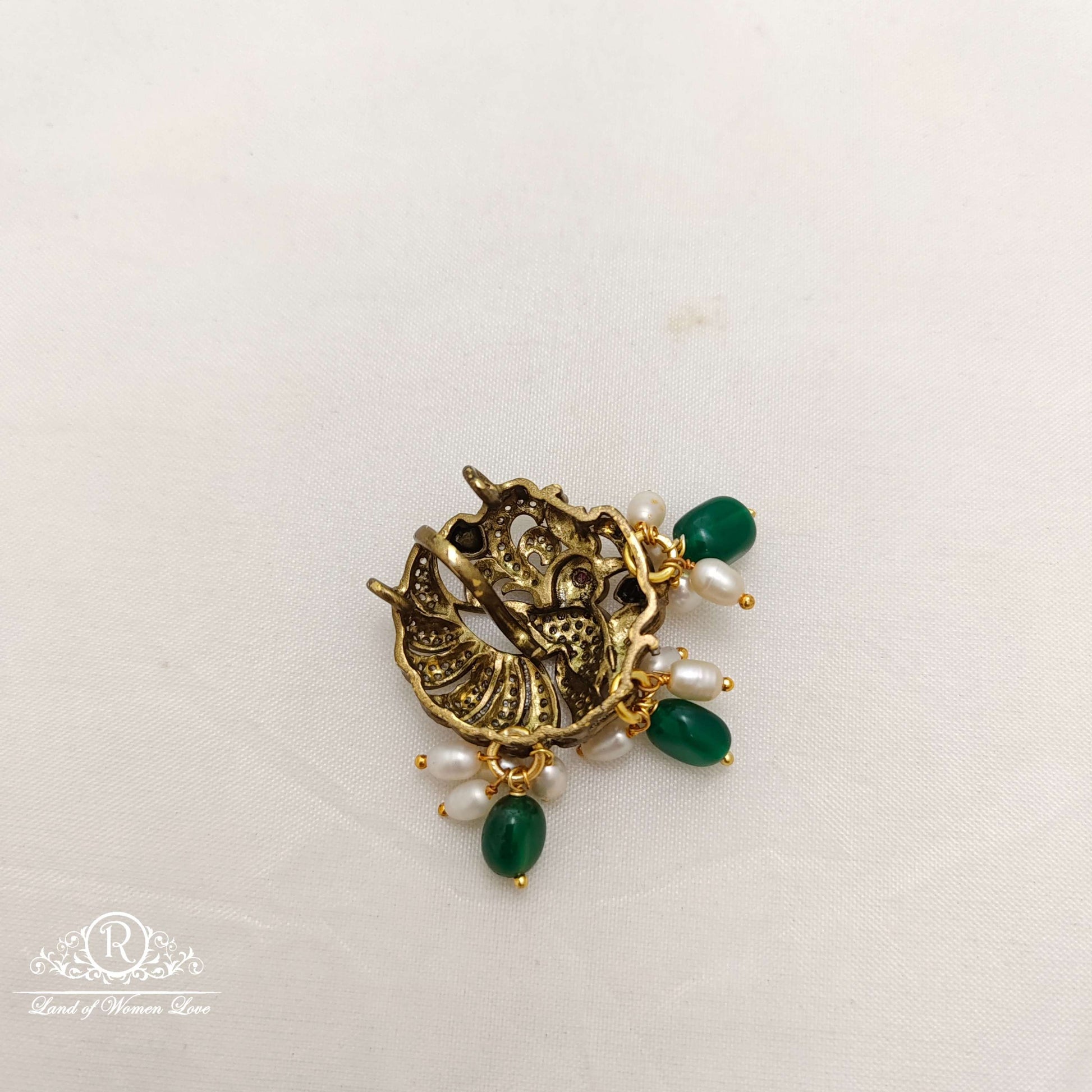 Silver base gold polish victorian small pendant with pearls and green hanging design 1.5 inches length openable hook design by ramalacollections