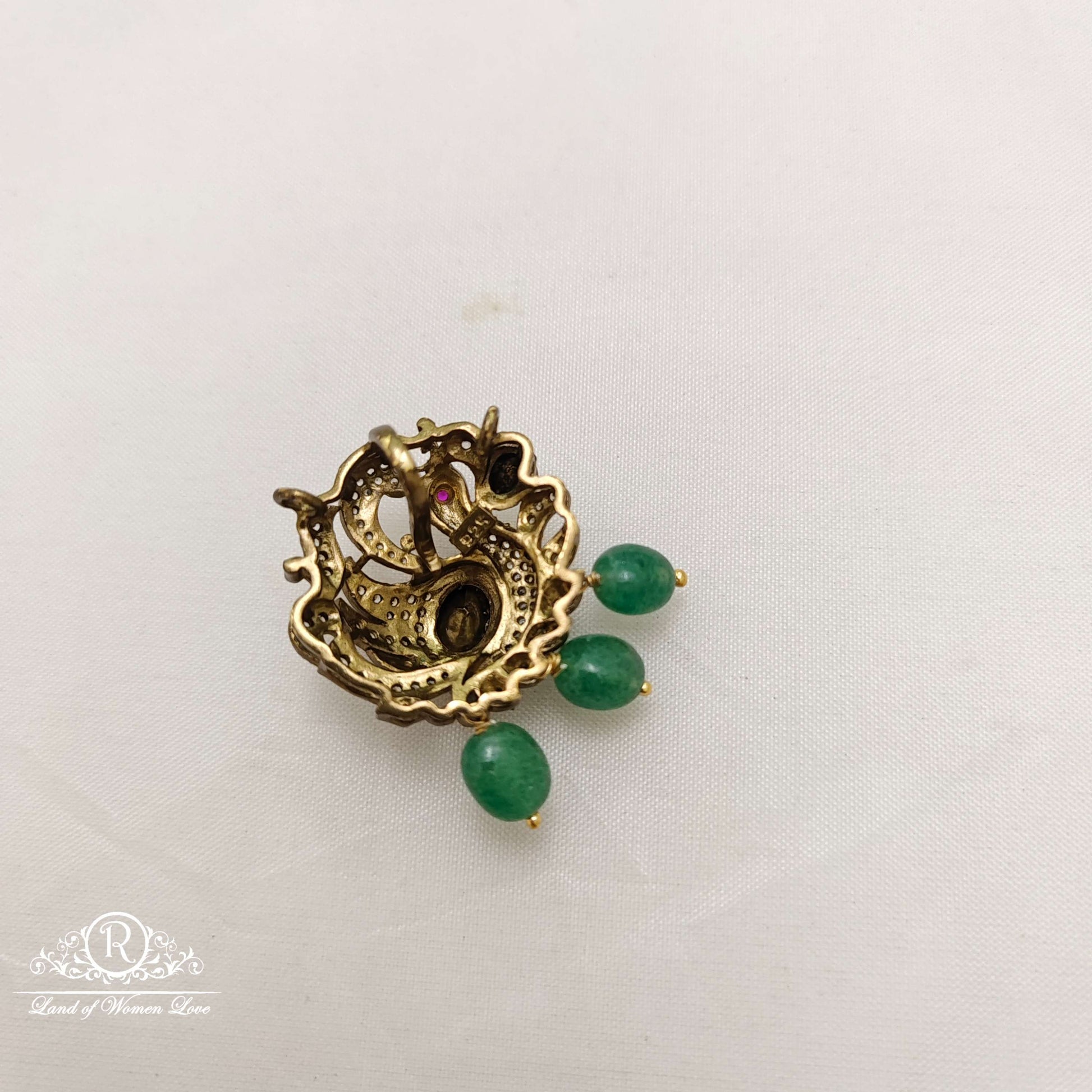 Silver base gold polish victorian small pendant with pearls and ruby hanging design 1.2inches length openable hook design by ramalacollections