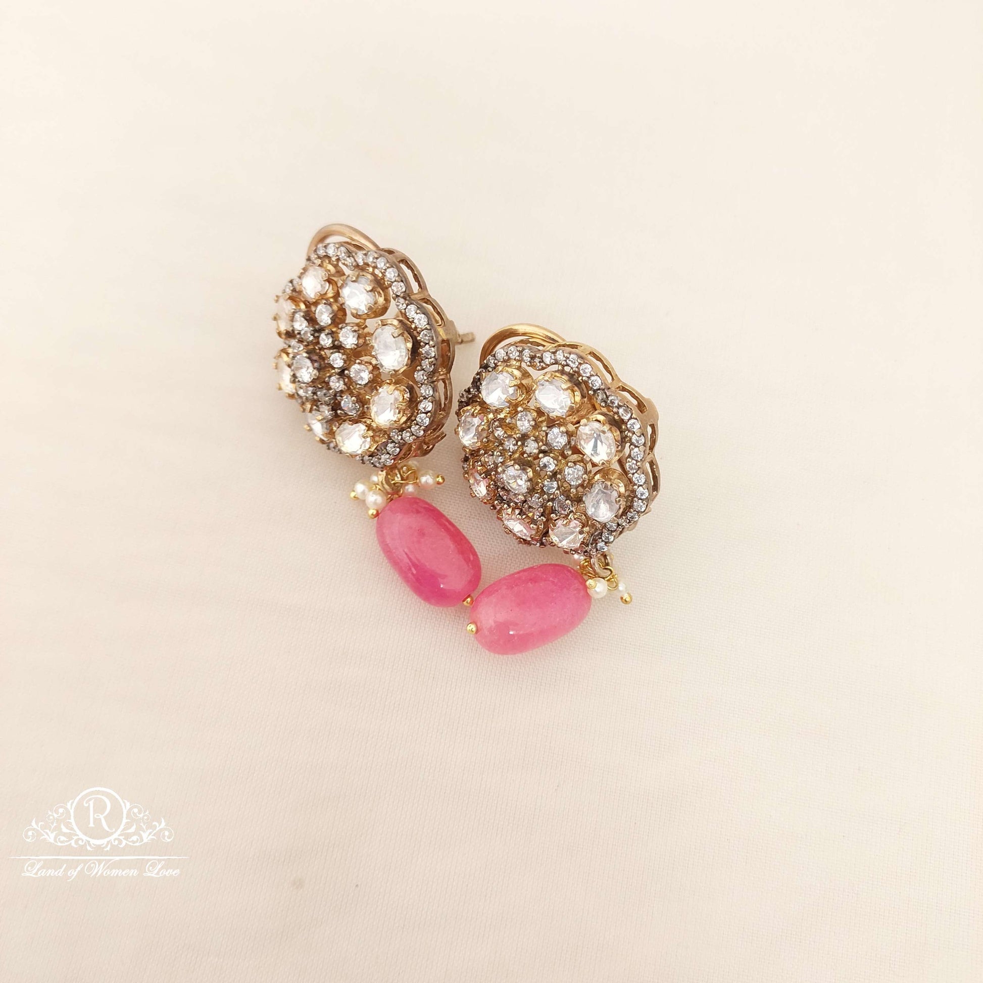 92.5 Silver Jewelry Beautiful Victoria Mosiznites Stone Black Polish Earrings Designs With 22k Gold coating With White Stones With 1.7" Inches Hanging Beads With Backside Screw model. From Ramalacollections