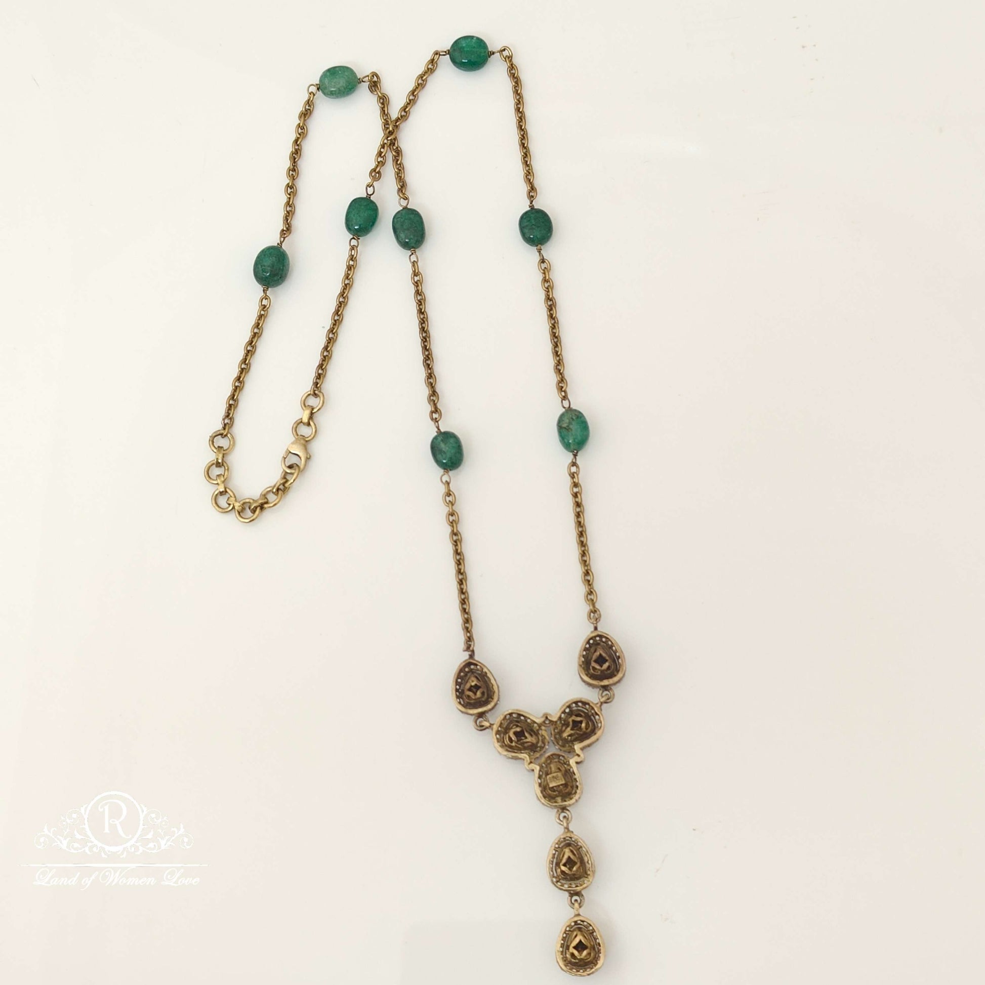 Silver base gold polish beautiful victorian mossinaite designs chain with cz white stones with 22 inches length by ramalacollections