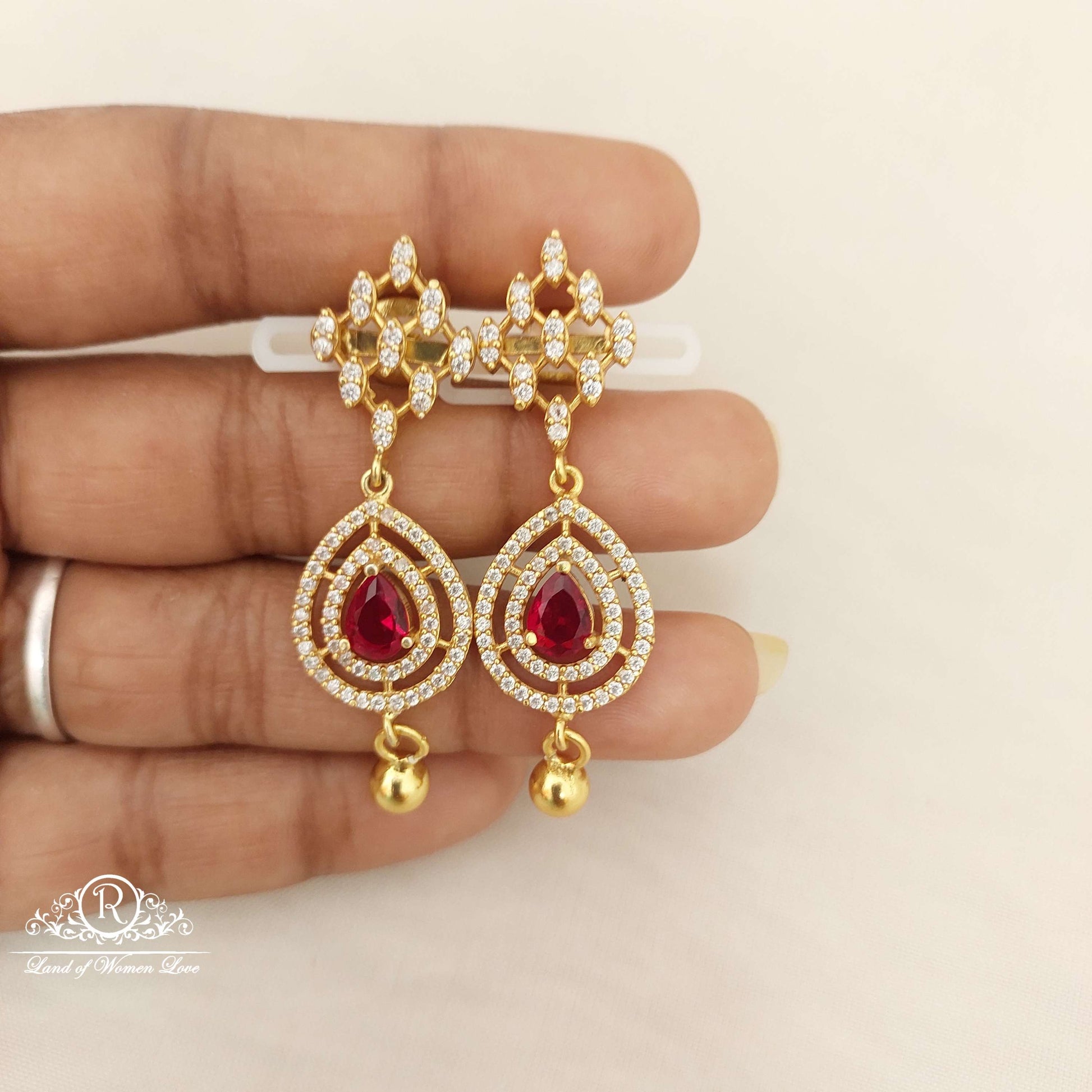 92.5 Silver Jewelry Beautiful Elephant Model Necklace With Earrings Designs Back Side Screw model With 22k Gold Coating With White Stones Middle Kempu Stones With Hanging Silver Gold Balls With 14" inches. From Ramalacollection