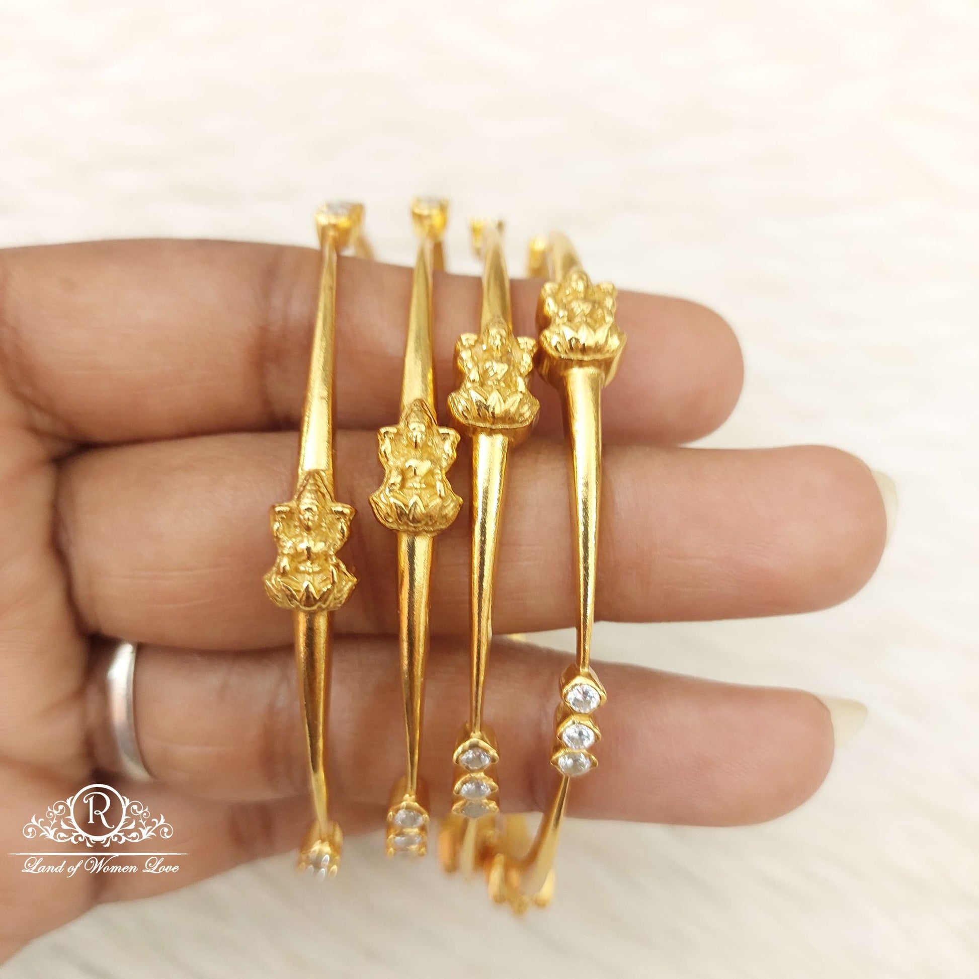 92.5 Silver Jewelry Beautiful Lakshmi Devi Bangles Designs With 22k Gold Coating With Middle White Stones With 2.6 Size Bangles 4. From Ramalacollections