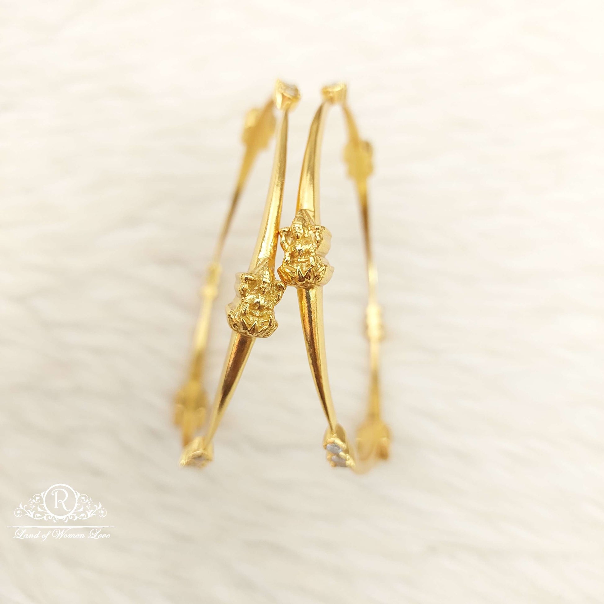 92.5 Silver Jewelry Beautiful Lakshmi Devi Bangles Designs With 22k Gold Coating With Middle White Stones With 2.6 Size Bangles. From Ramalacollections