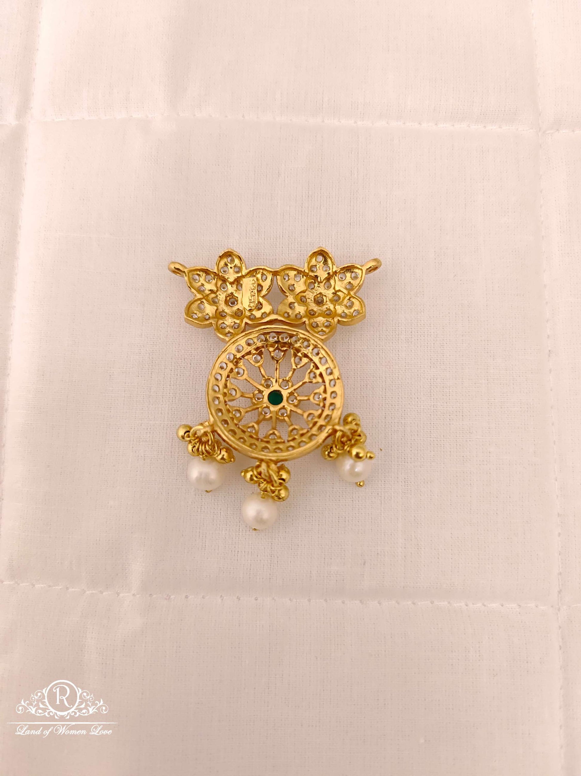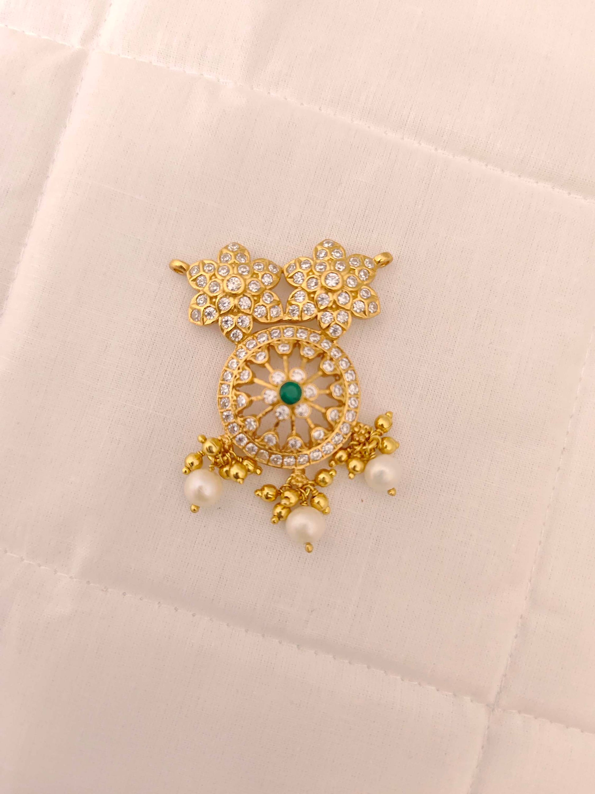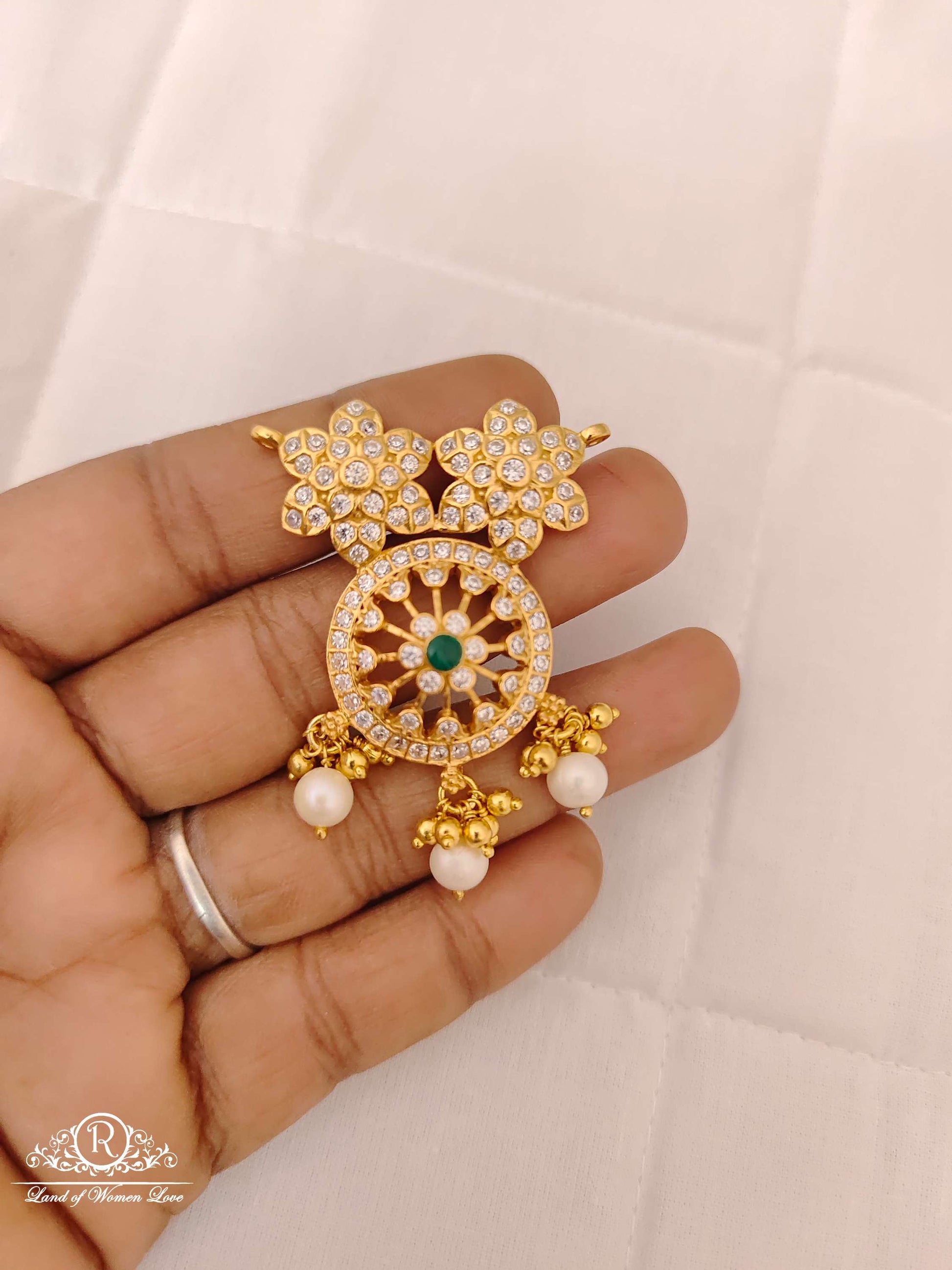 92.5 Silver Jewelry Beautiful Mala Locket Designs With White Stones Middle Green Stone With 22k Gold Coating Hanging Silver Gold Balls & Pearls With 1.5" Inches.From Ramalacollections