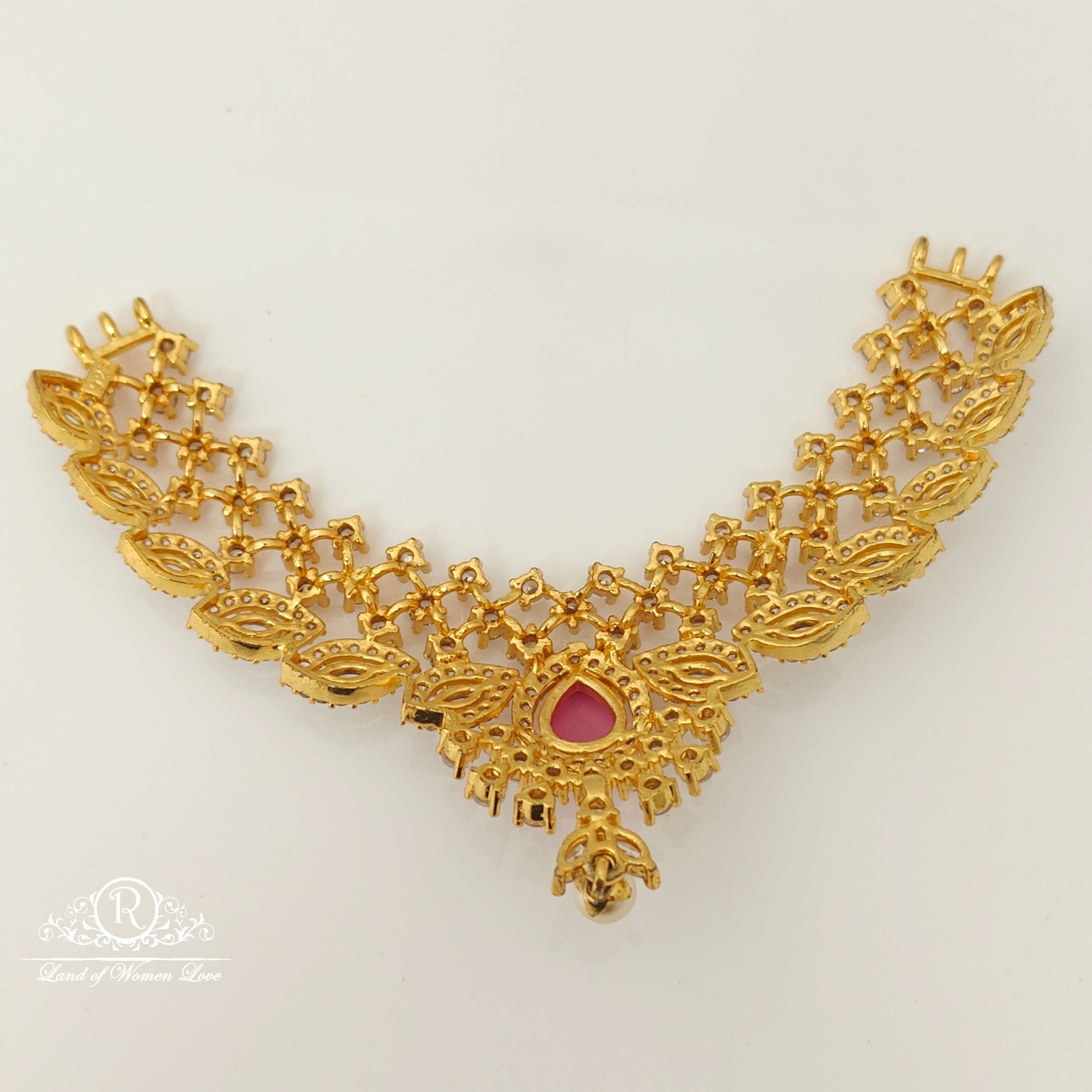 92.5 Silver Base gold polish beautiful Mala Locket Designs White Stones middle Kempu Stones 2 rings with 2.5" inches by from ramalacollections