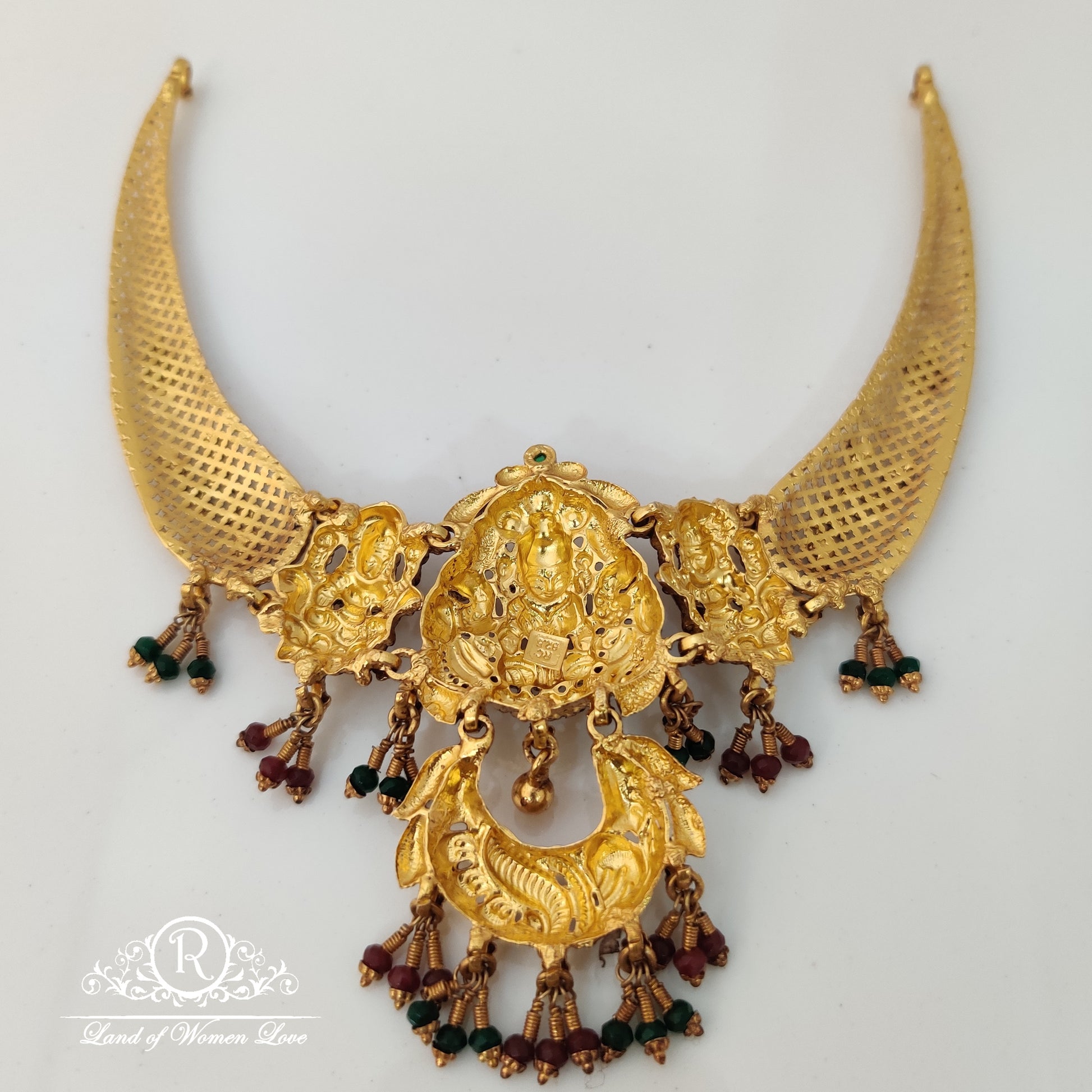 Simple and cute silver ✨ kantey with Lakshmi Devi design and hangings with92.5 silver Jewelry with 22k gold coating 💫 12"-RCMA05