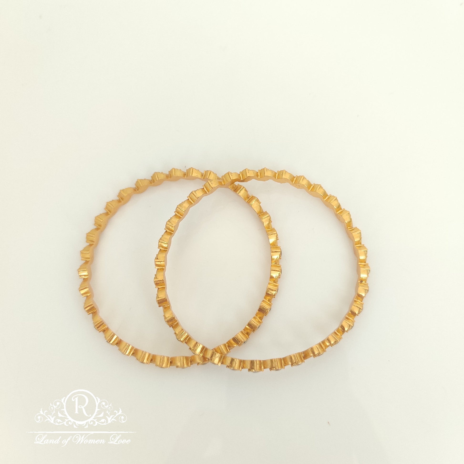 92.92.5 Silver base 22k gold polish White stones Bangles with 2.8 Size from Ramala Collections ✨